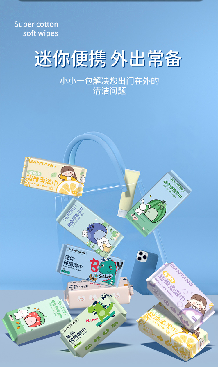mini wipes (upgraded) 8 pieces/pack, 8 packs/one pack