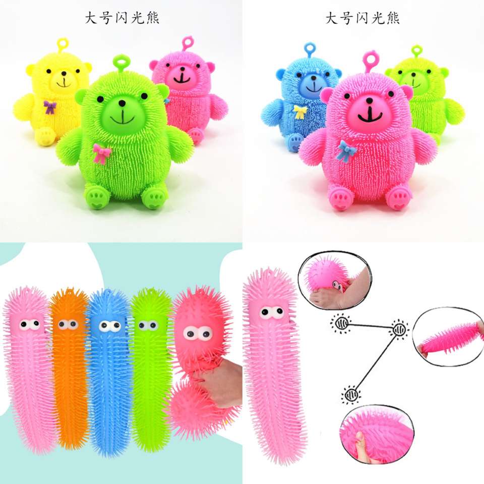 night market hot sale luminous 50cm colorful caterpillar flash decompression hair toy factory supply stall wholesale