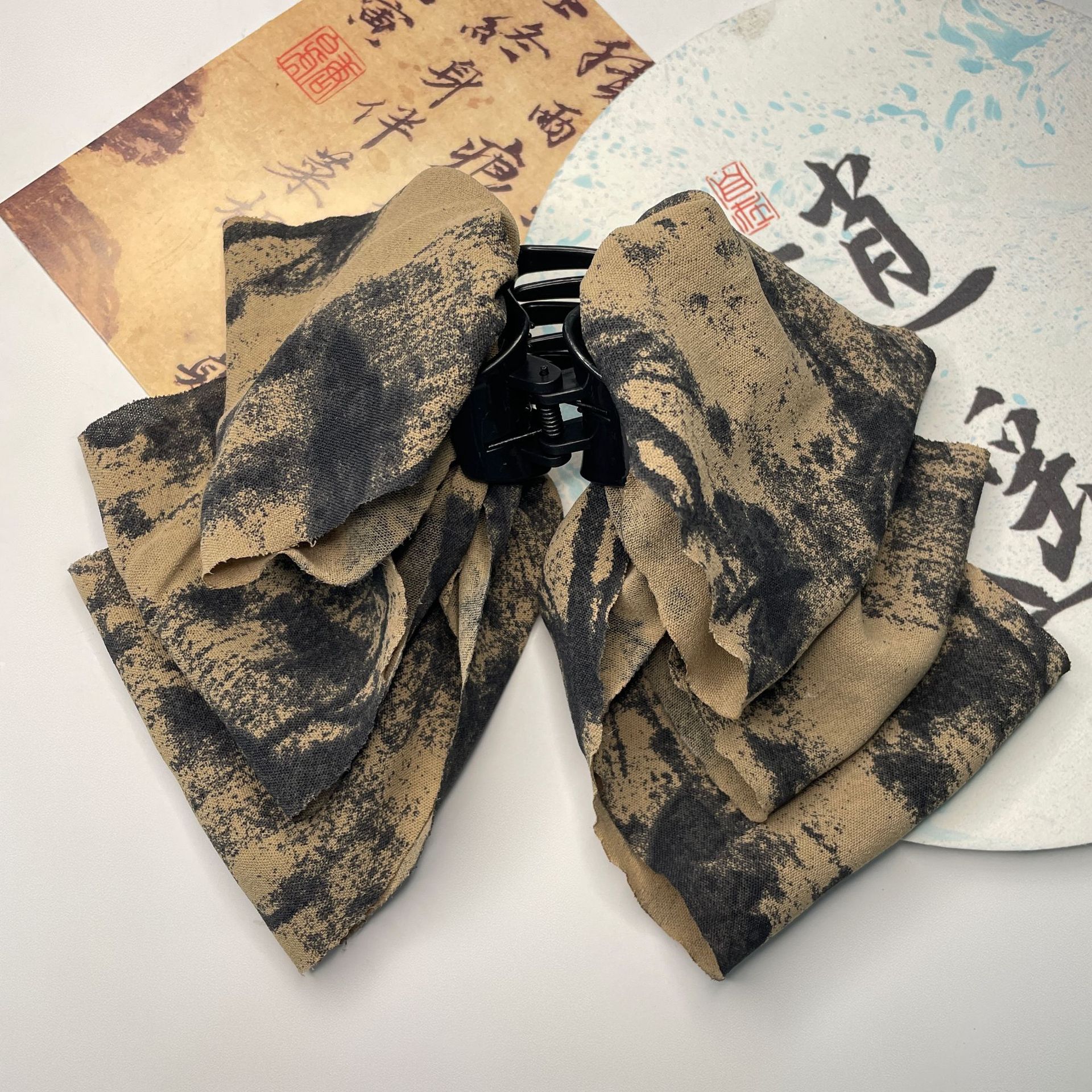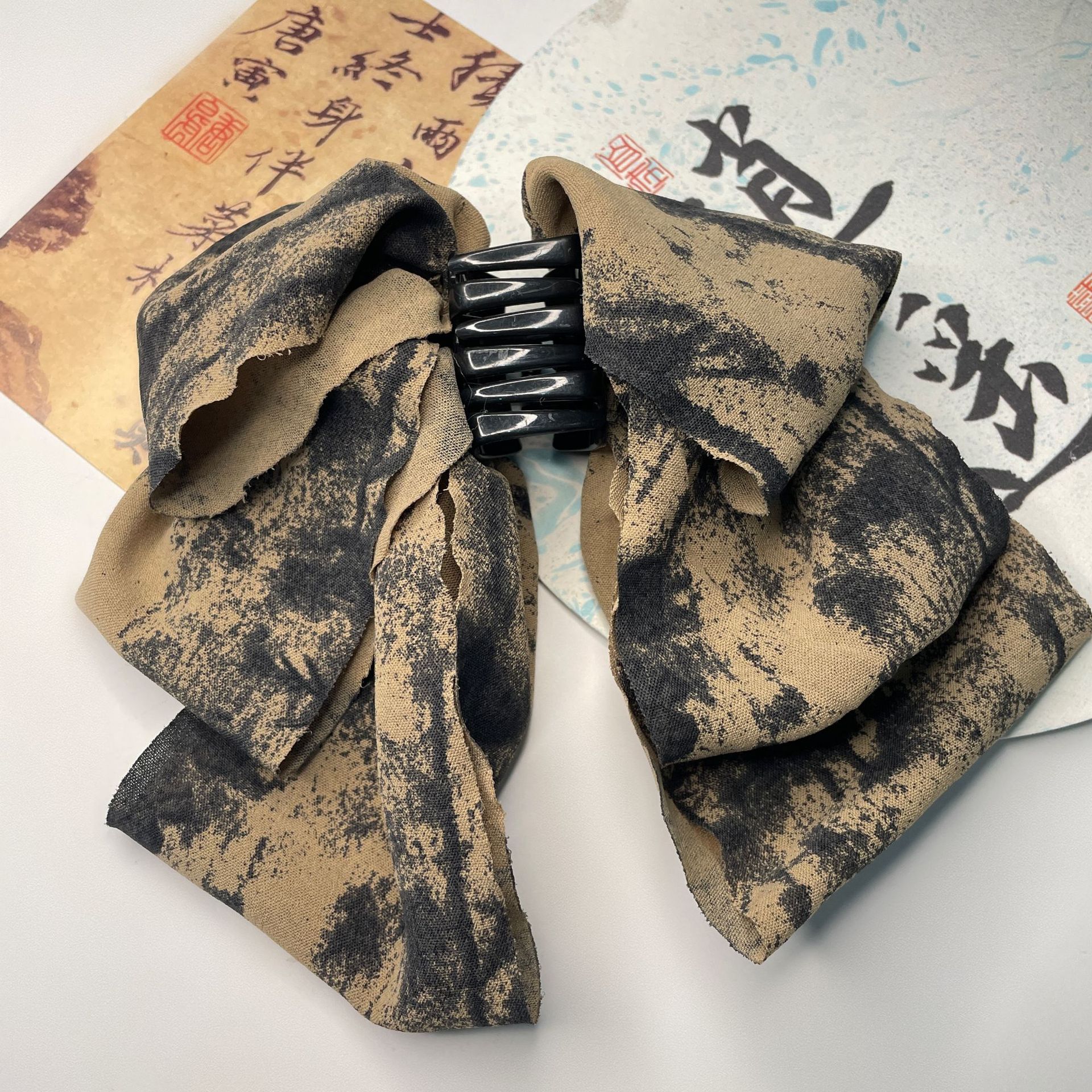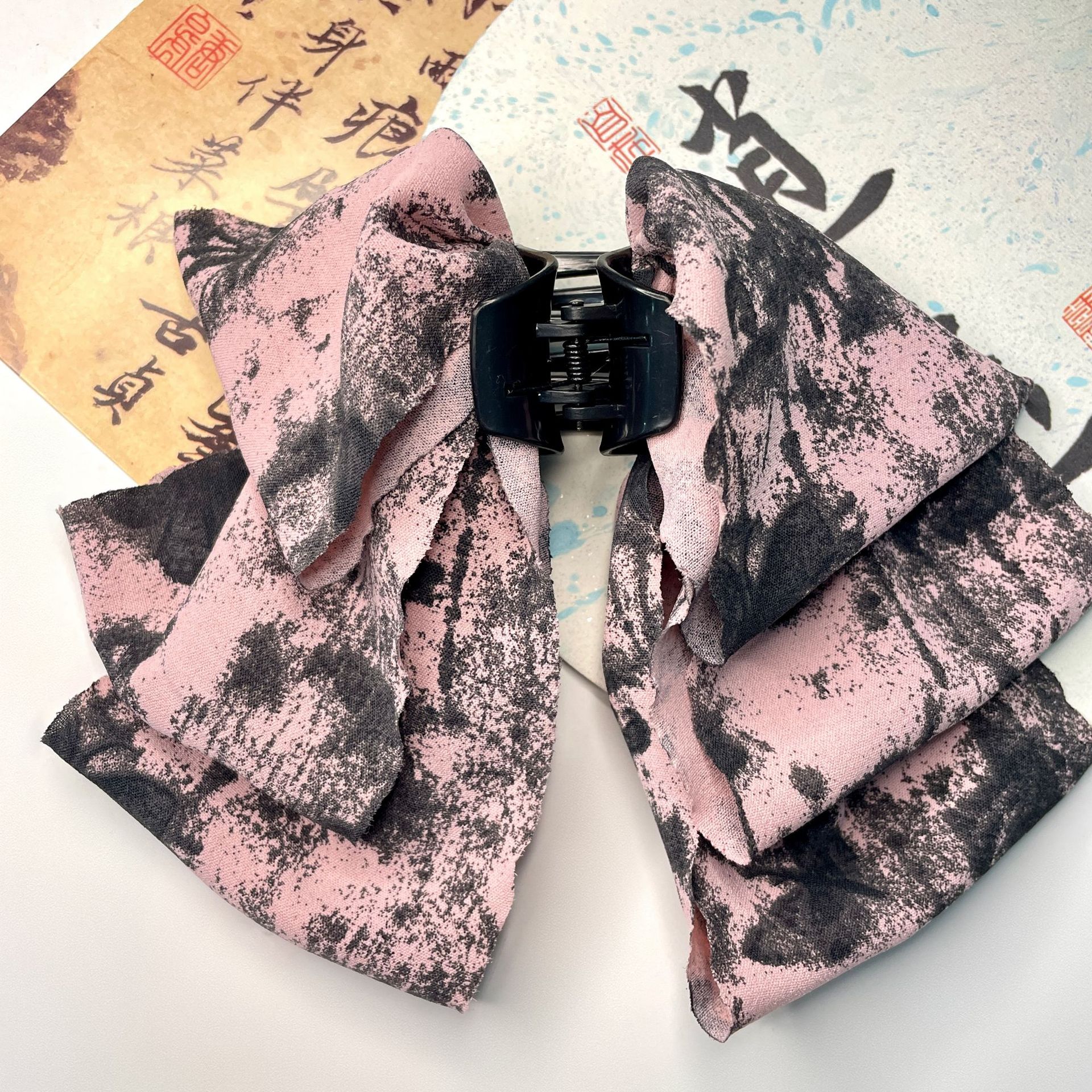 new chinese ink painting grip graceful bow ribbon hairpin female back head shark clip clip archaistic headdress 中文版