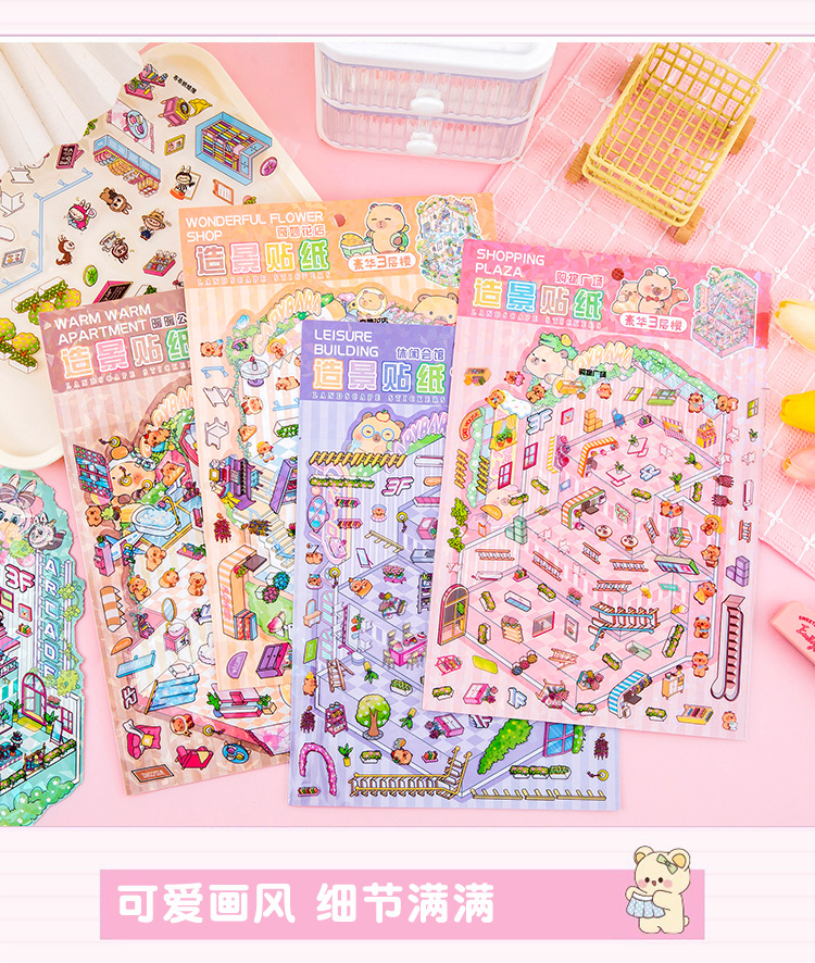Each set contains 1 scene card, 1 PET sticker, and 1 pair of tweezers.