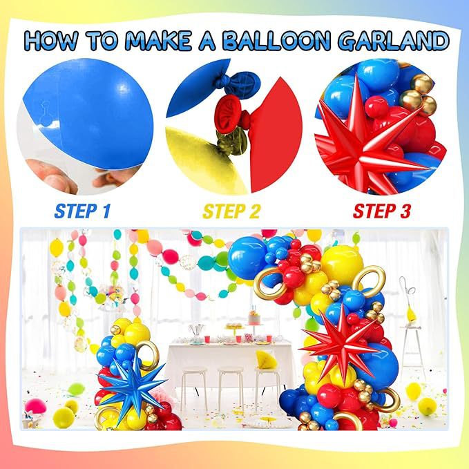 126 pieces red and blue and yellow balloon arch golden circle explosion star boy children carnival circus birthday party