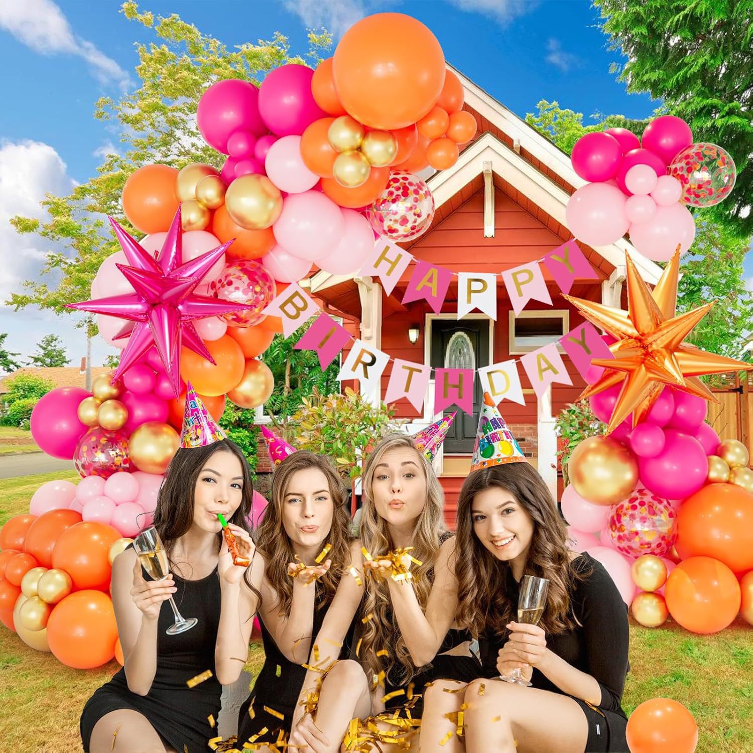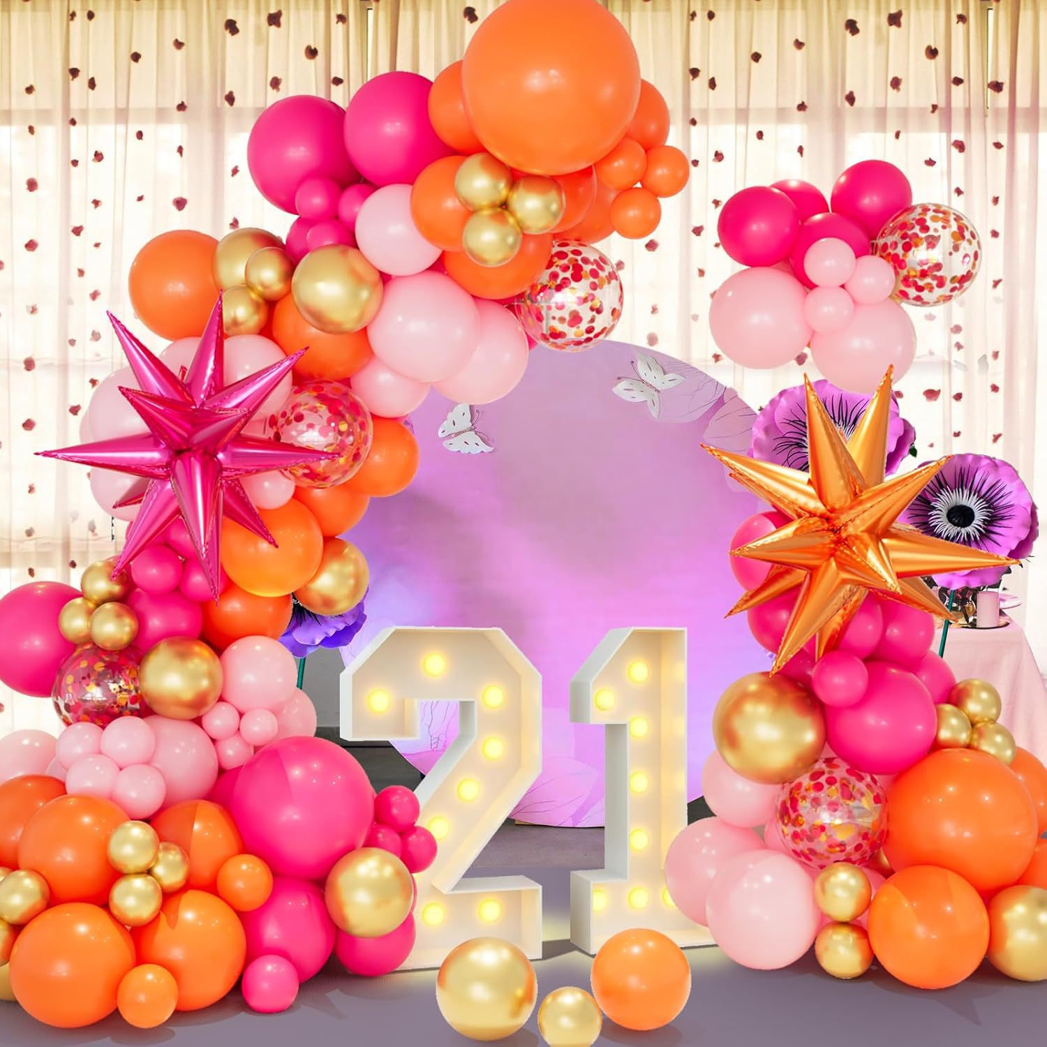 146 pcs hawaiian orange pink balloon garland suit summer pool explosion star birthday party decoration