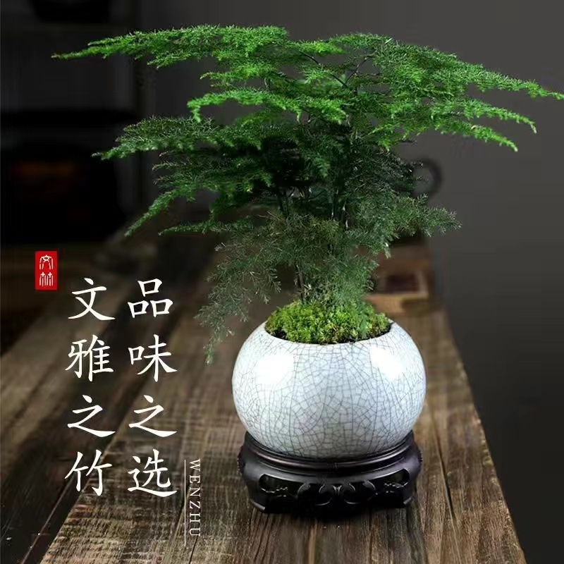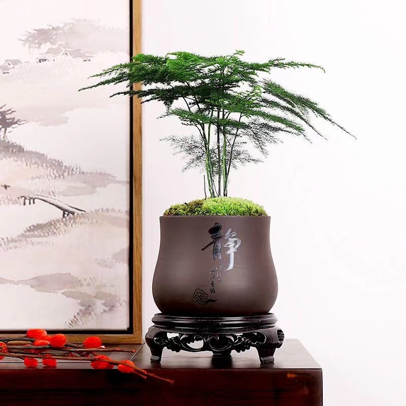 [moss style] asparagus fern + square landscape basin + pacifier