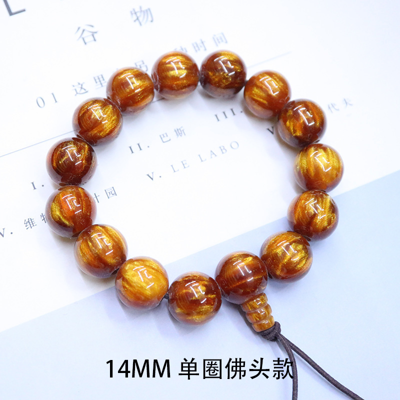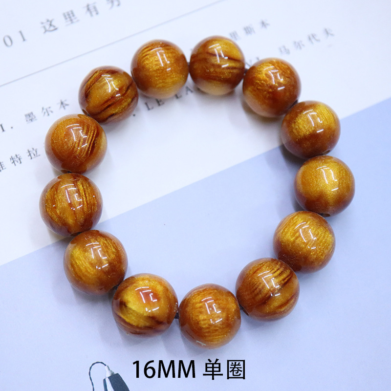 【Product Name】: Golden Seaweed Wood Bead Bracelet