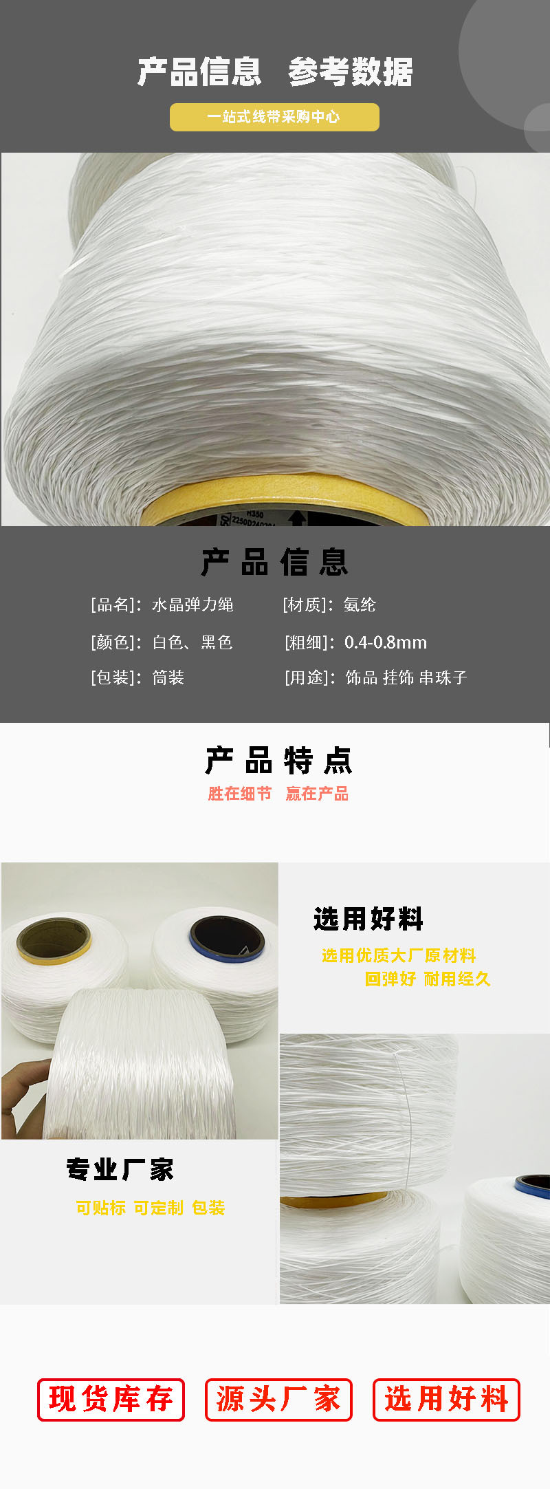 氨纶弹力绳厂家直销 大货批发整件批发 大卷大桶工厂自用实惠 多丝水晶线多股弹力绳透明水晶鞋 高回弹水晶线