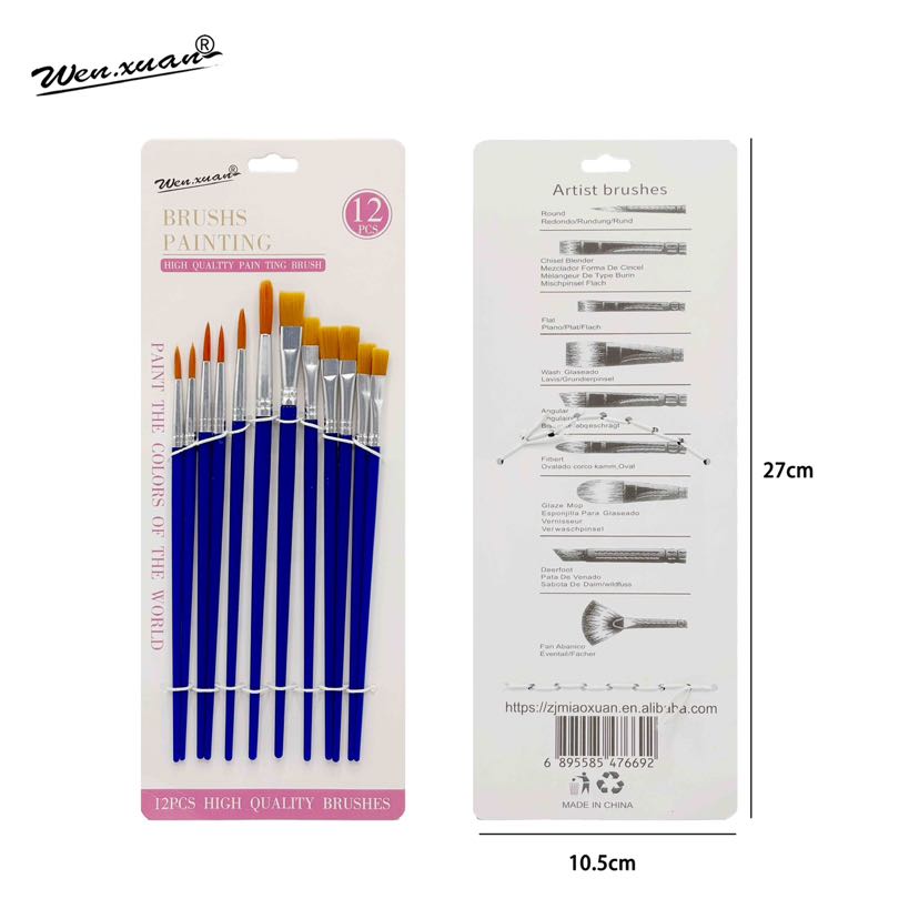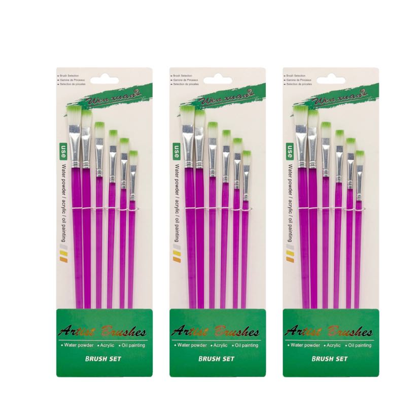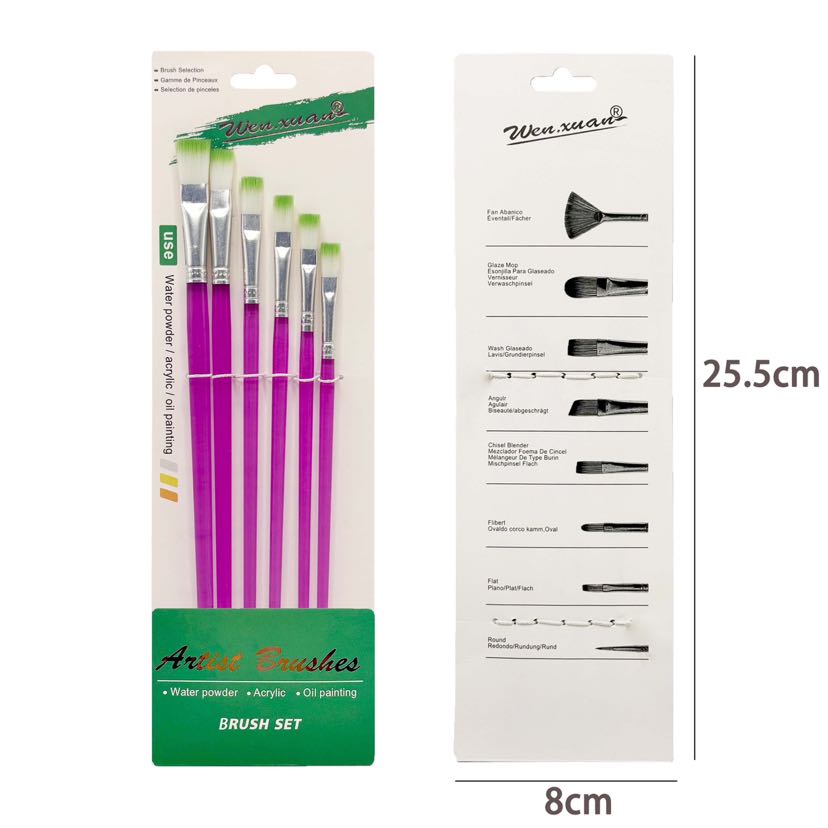 foreign trade hot sale 6-pack brush plastic rod two-color nylon wool oil painting brush gouache acrylic art paint paint brush 中文版