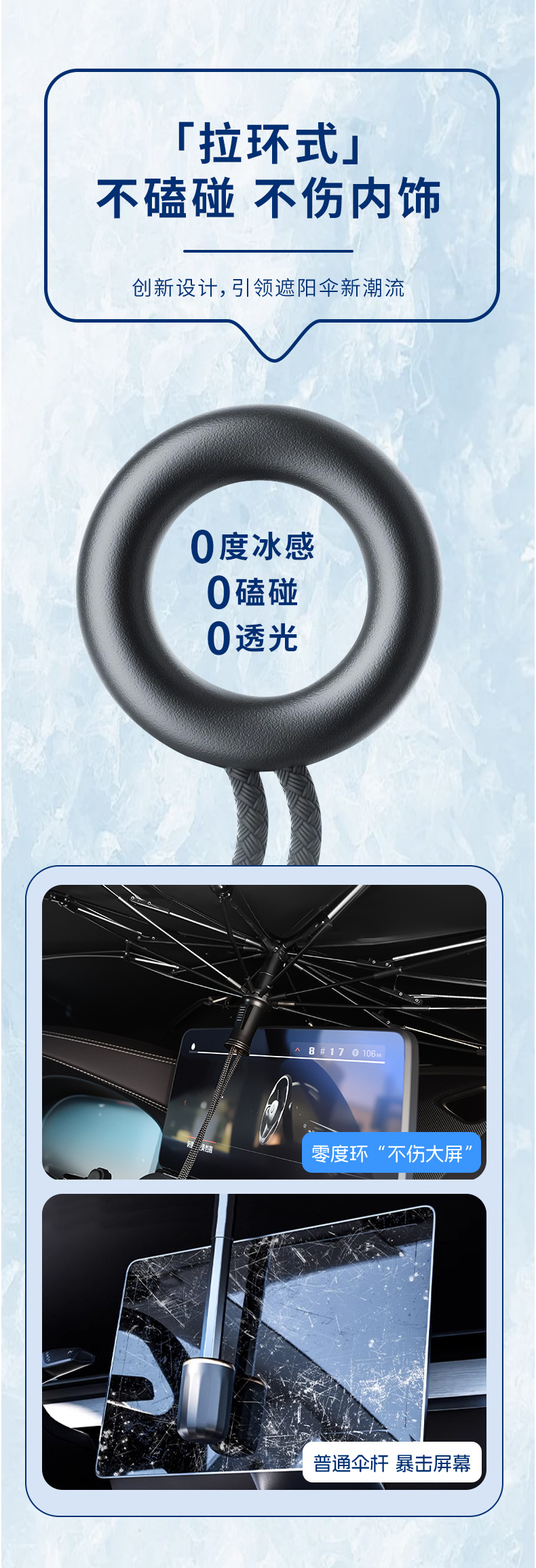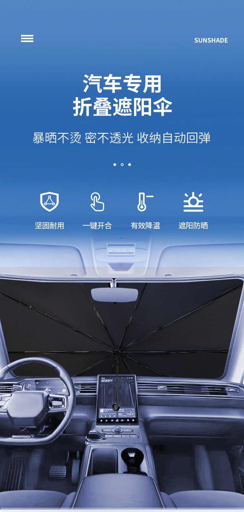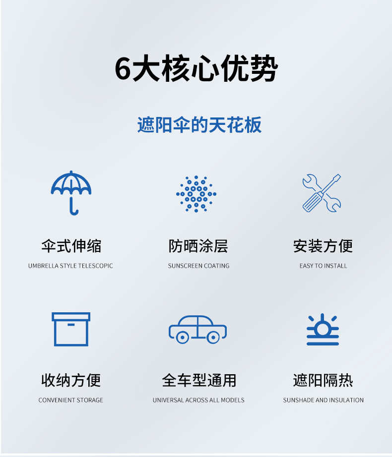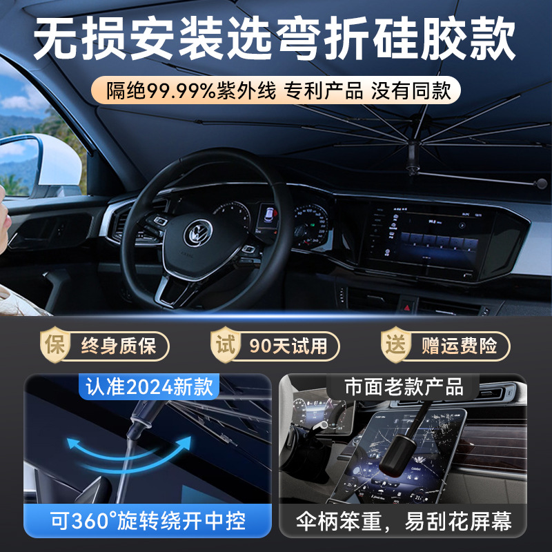 【Selection Tips】: Umbrellas are more suitable for standard vehicles; Large size 140*80cm, small size 125*65cm. Standard three-box five-seat sedan models and compact SUV models are recommended to choose the large size, while the small size is suitable for two-box two-seat mini models.