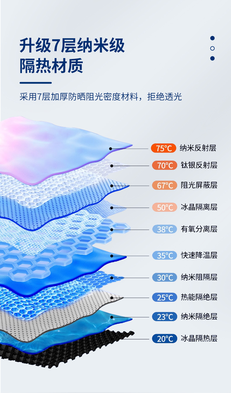 Titanium silver fabric: Large size 140*80cm, 278g/m²; Medium size: 130*70cm, 278g/m²; Small size: 125*65cm, 260g/m²