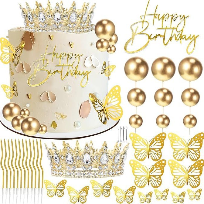 crown cake ornament ball happy birthday cake with crown birthday candle golden butterfly wedding cake decoration 中文版