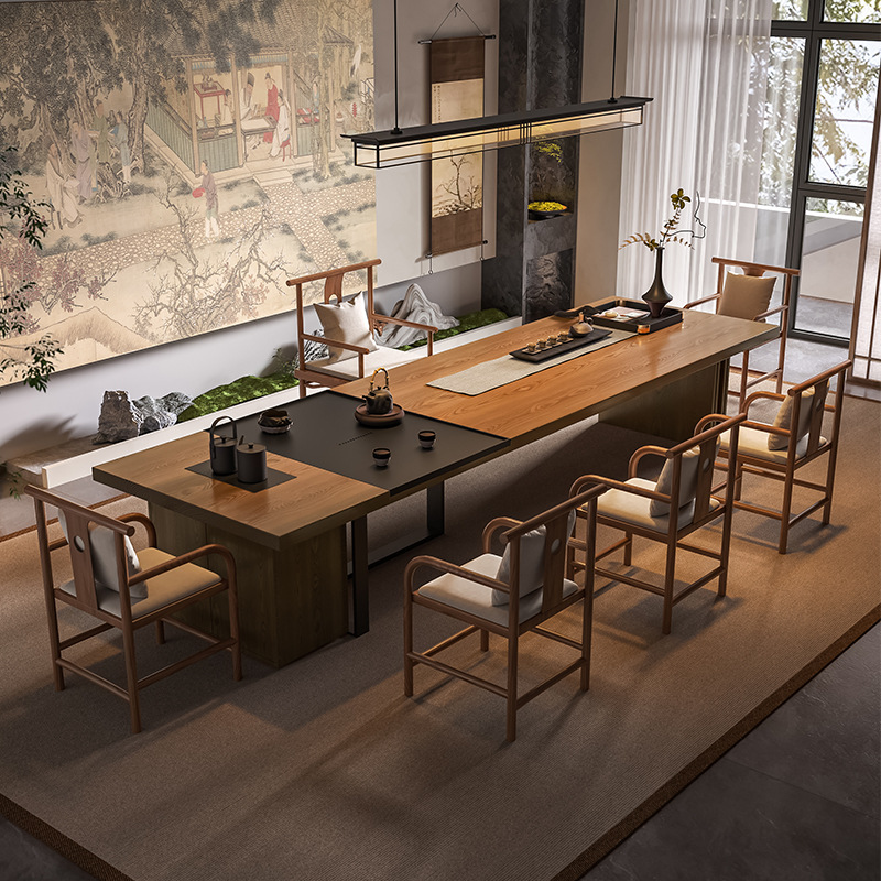 2.6 m ash wood tea table + armrest punching chair + zen flavor chair * 2+1.0 m bench