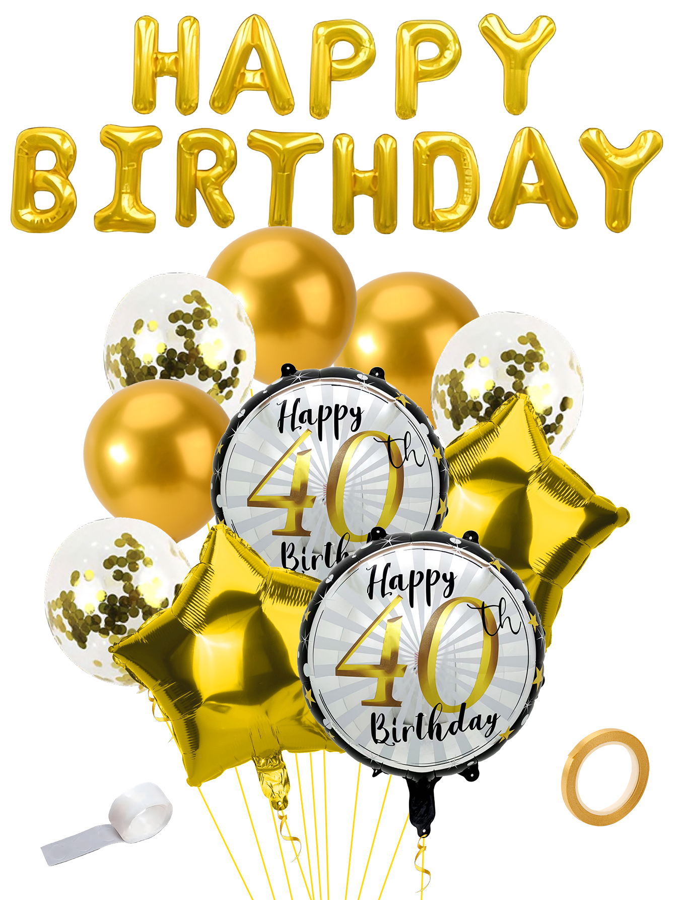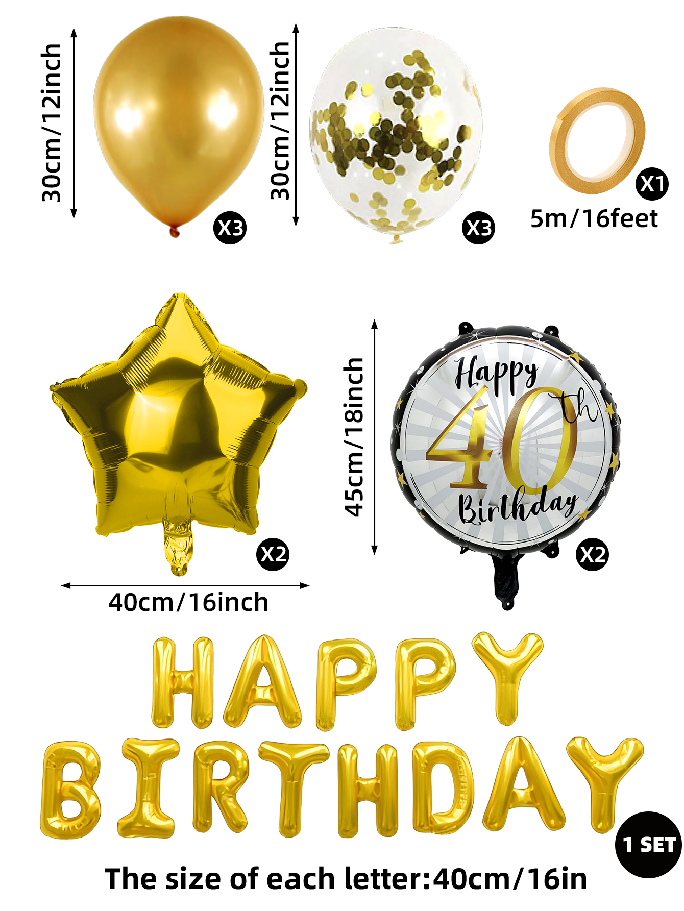 13 pcs 40 th birthday balloon set a roll of 5 m ribbon five-pointed star aluminum film balloon sequined milk