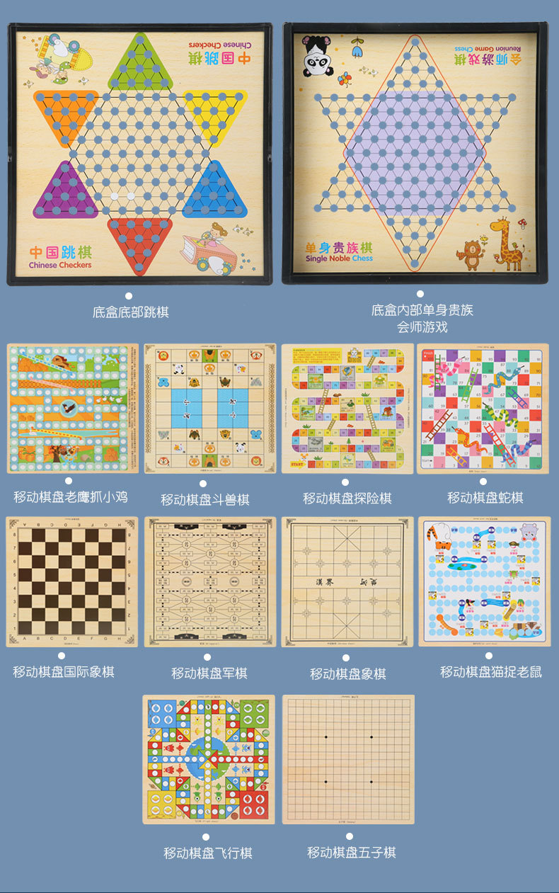 checkers + five-in-a-row + aeroplane chess