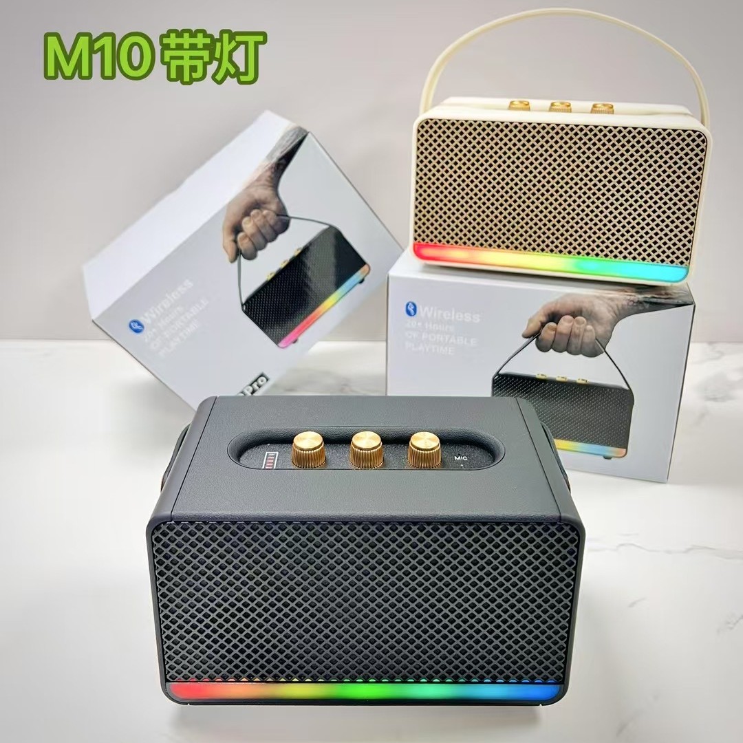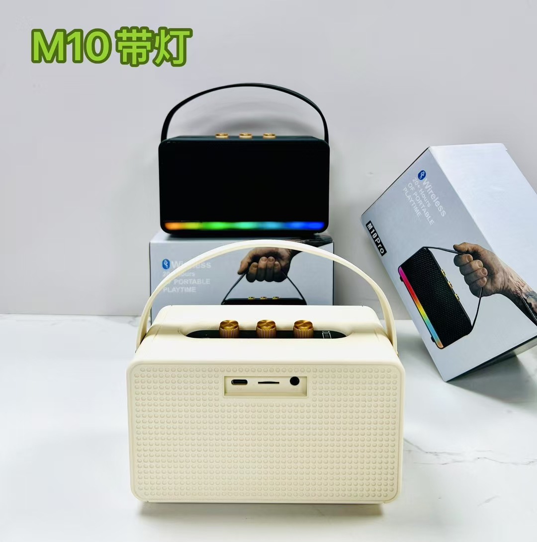 popular m10 bluetooth speaker with light household desk portable outdoor wireless stereo card extra bass 中文版