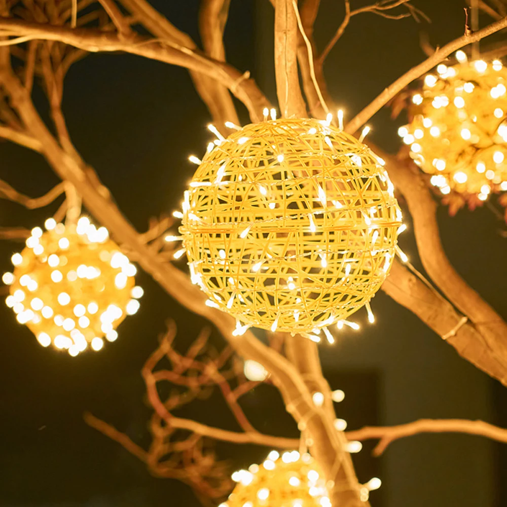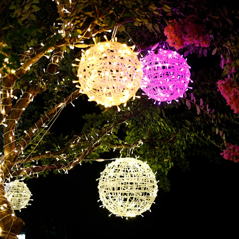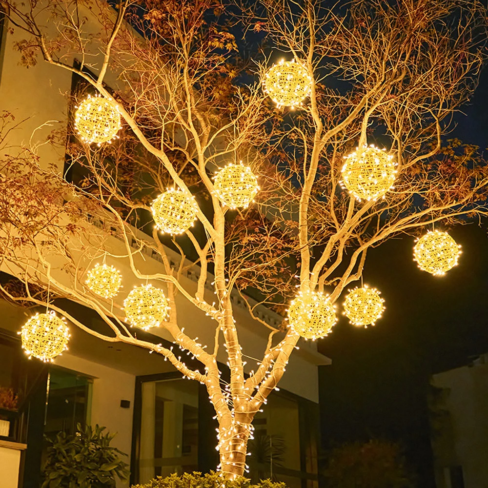 Solar Rattan Lamp Festival Decoration Outdoor Ball Lights Landscape Hanging Tree Ball Lights Street Outdoor Lighting Strings