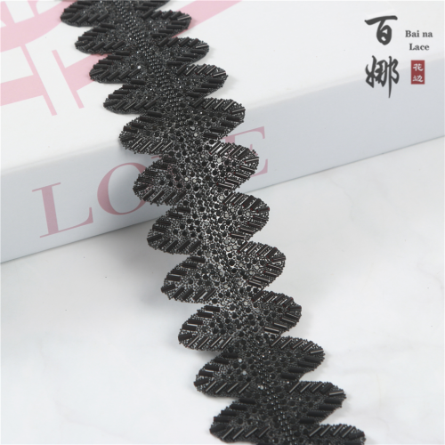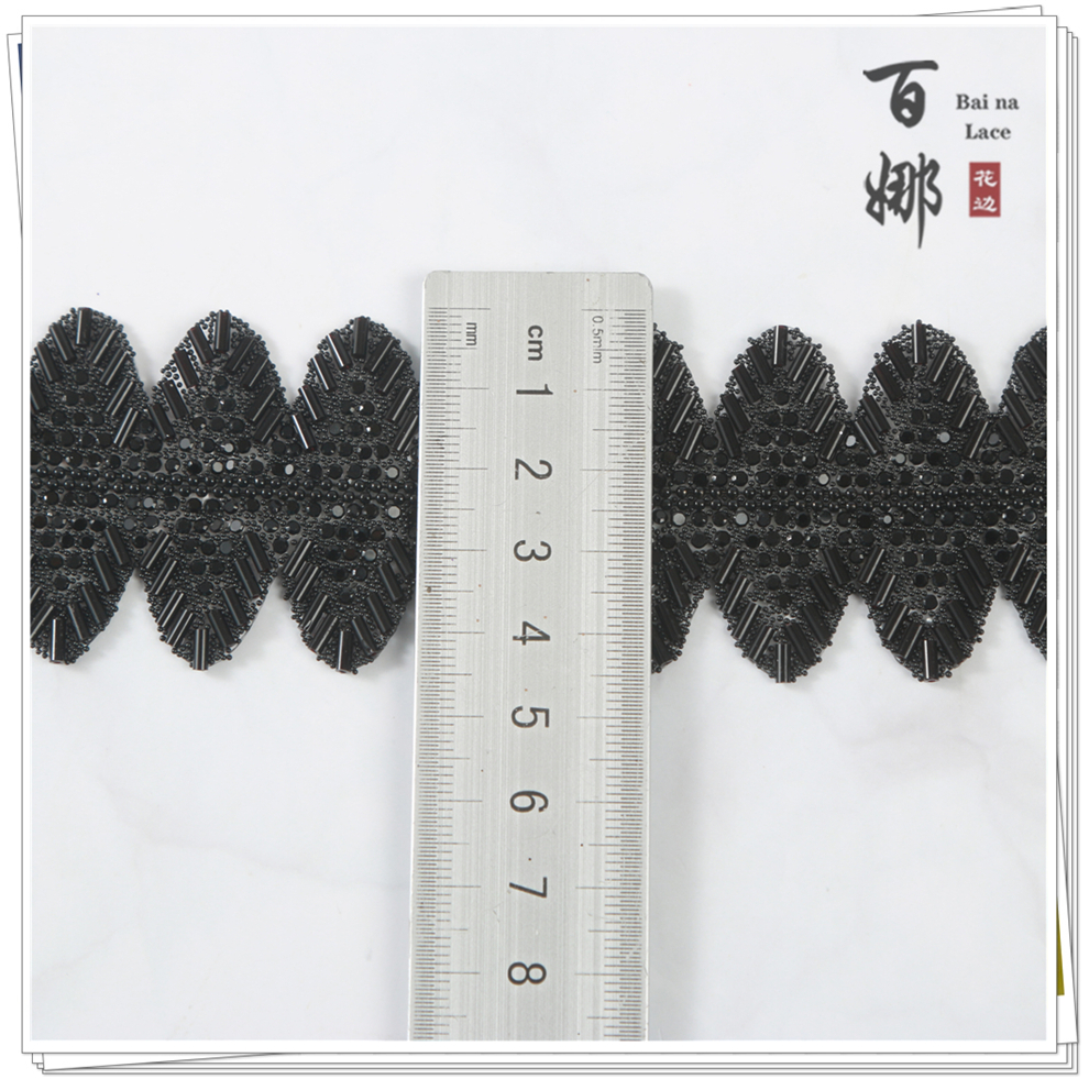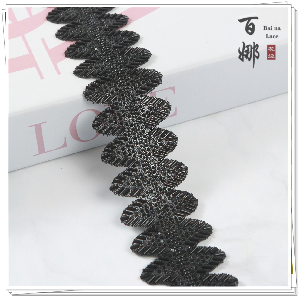 Product Name: BJ039 Model Black Wave-shaped Lace Ribbon with Rhinestone Decorative Strip DIY Jewelry Accessories Clothing Footwear Materials Accessory