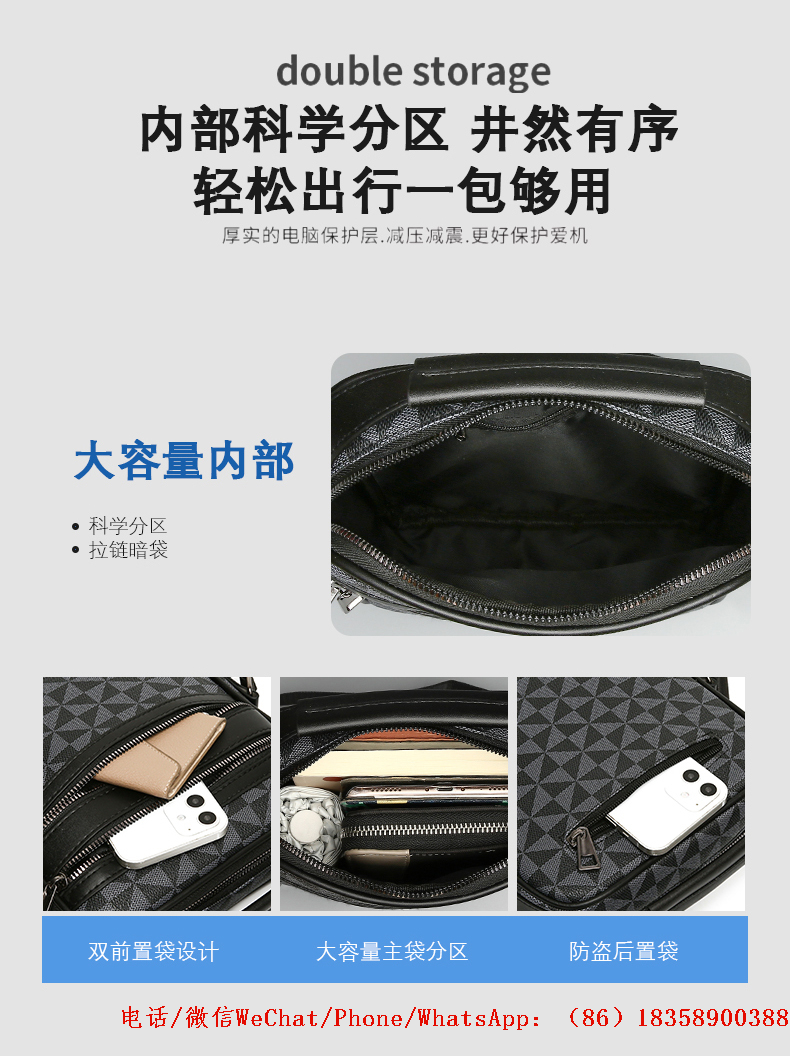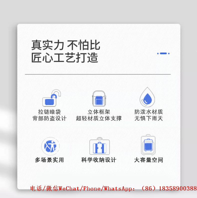 We have been dedicated to the production of luggage and bags for more than a decade, specializing in full-range products made from genuine leather, PU, PVC, nylon, oxford cloth, and canvas, including backpacks, shoulder bags, business men's bags, fashion women's bags, single-shoulder bags, school bags, travel bags, and large capacity luggage bags. We have over 3,000 stock items available, supporting 72-hour lightning delivery, and also provide deep customization services to meet different purchasing needs.