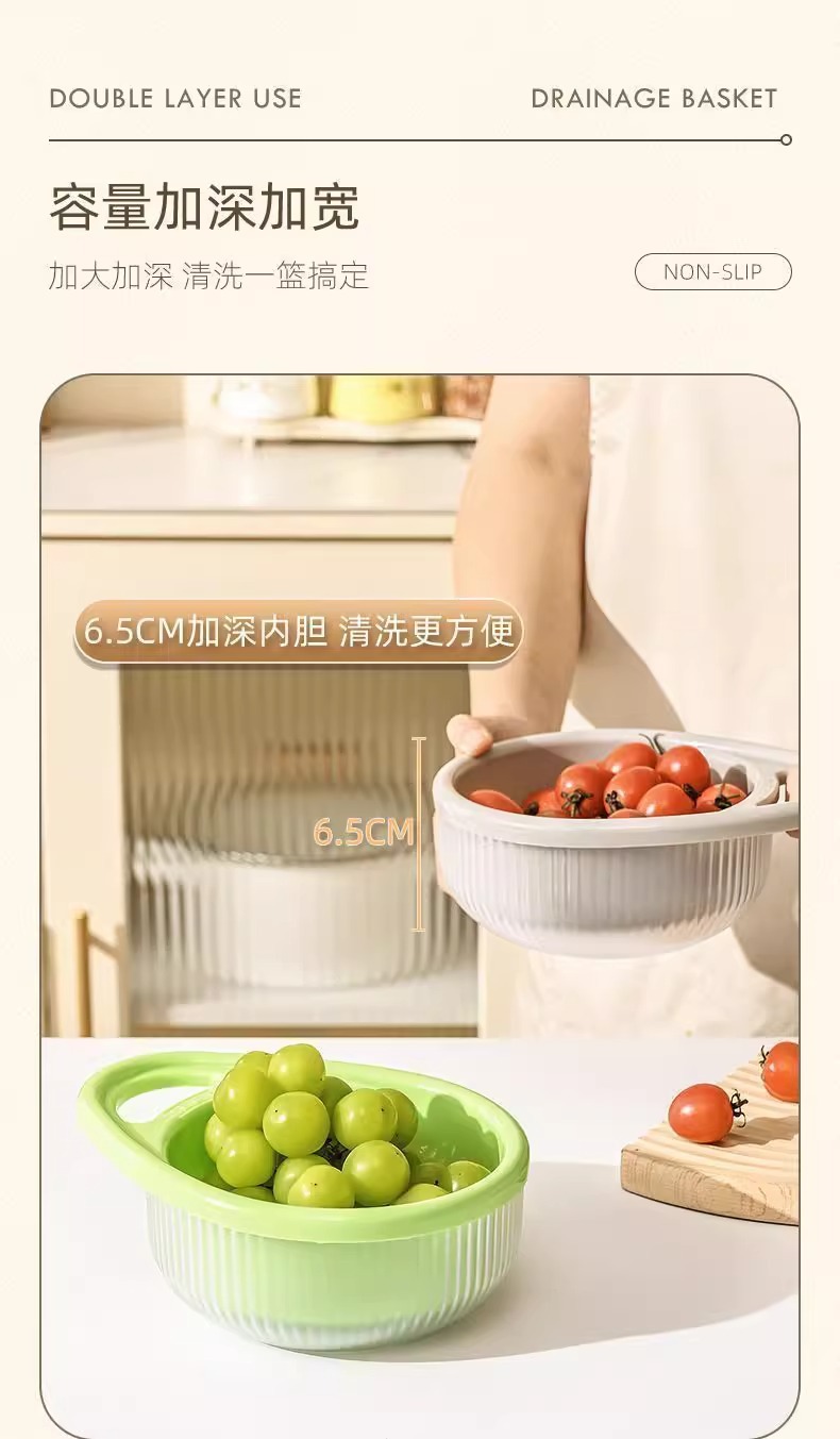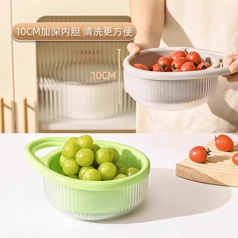 fruit and vegetable double-layer drain basket [green 】