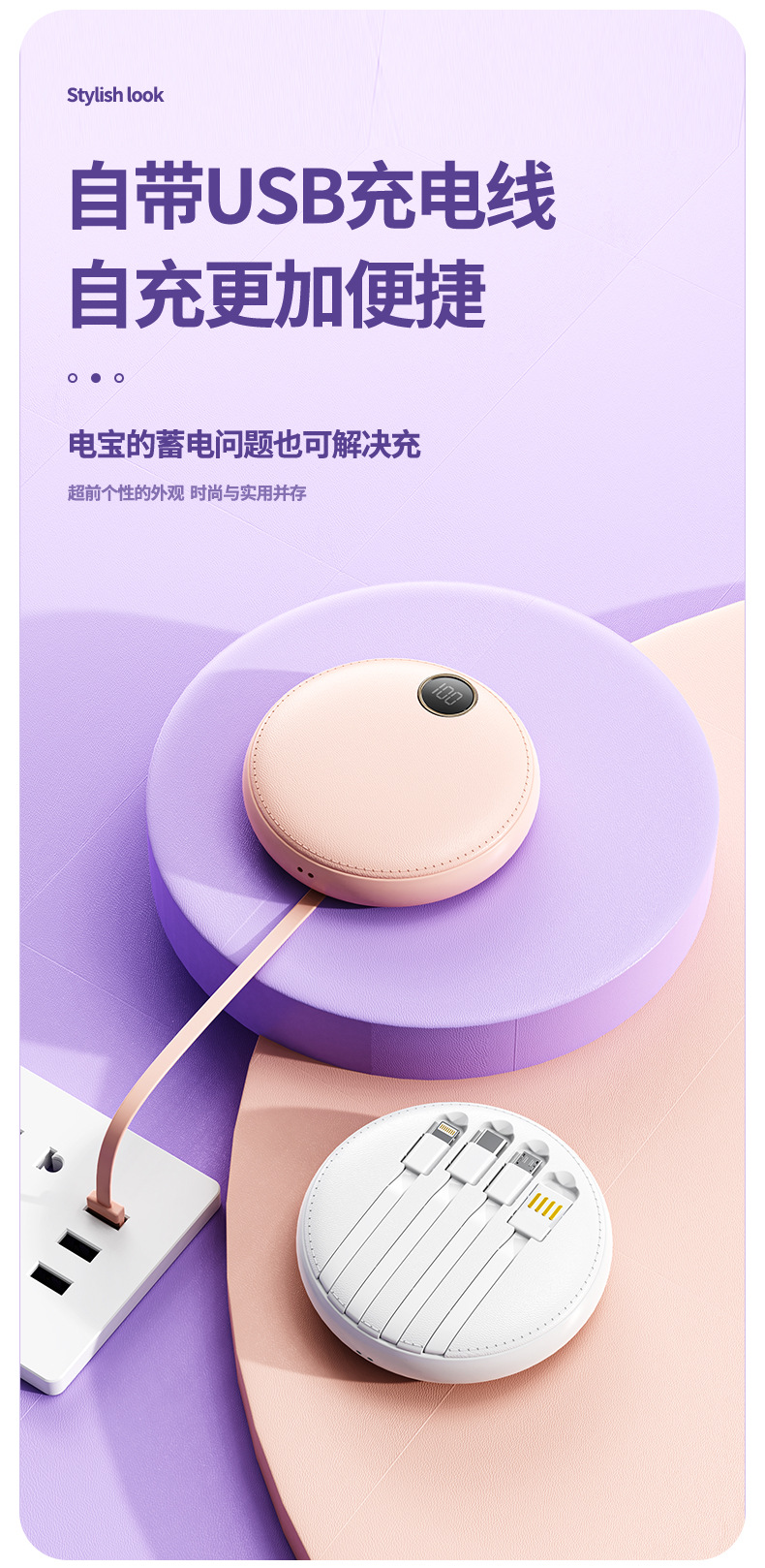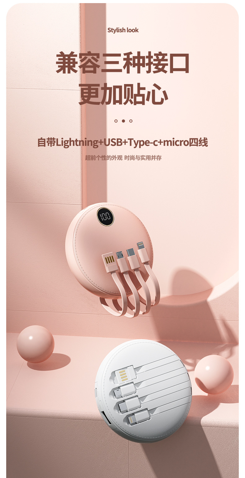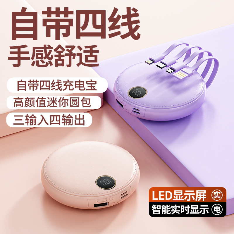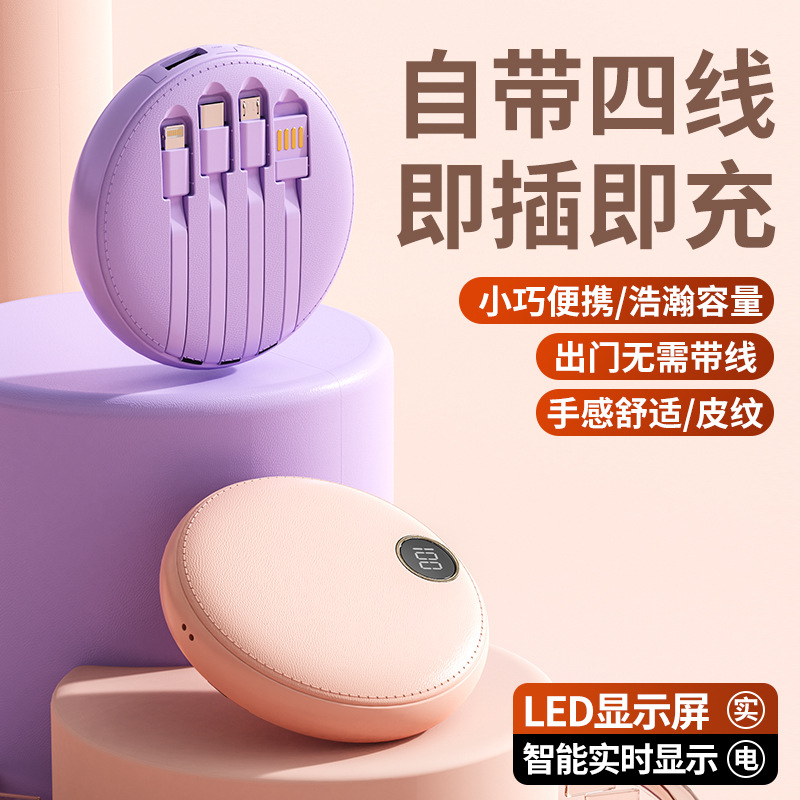 new 10000 ma large capacity digital display mobile power supply mini round with cable power bank gift printing 中文版