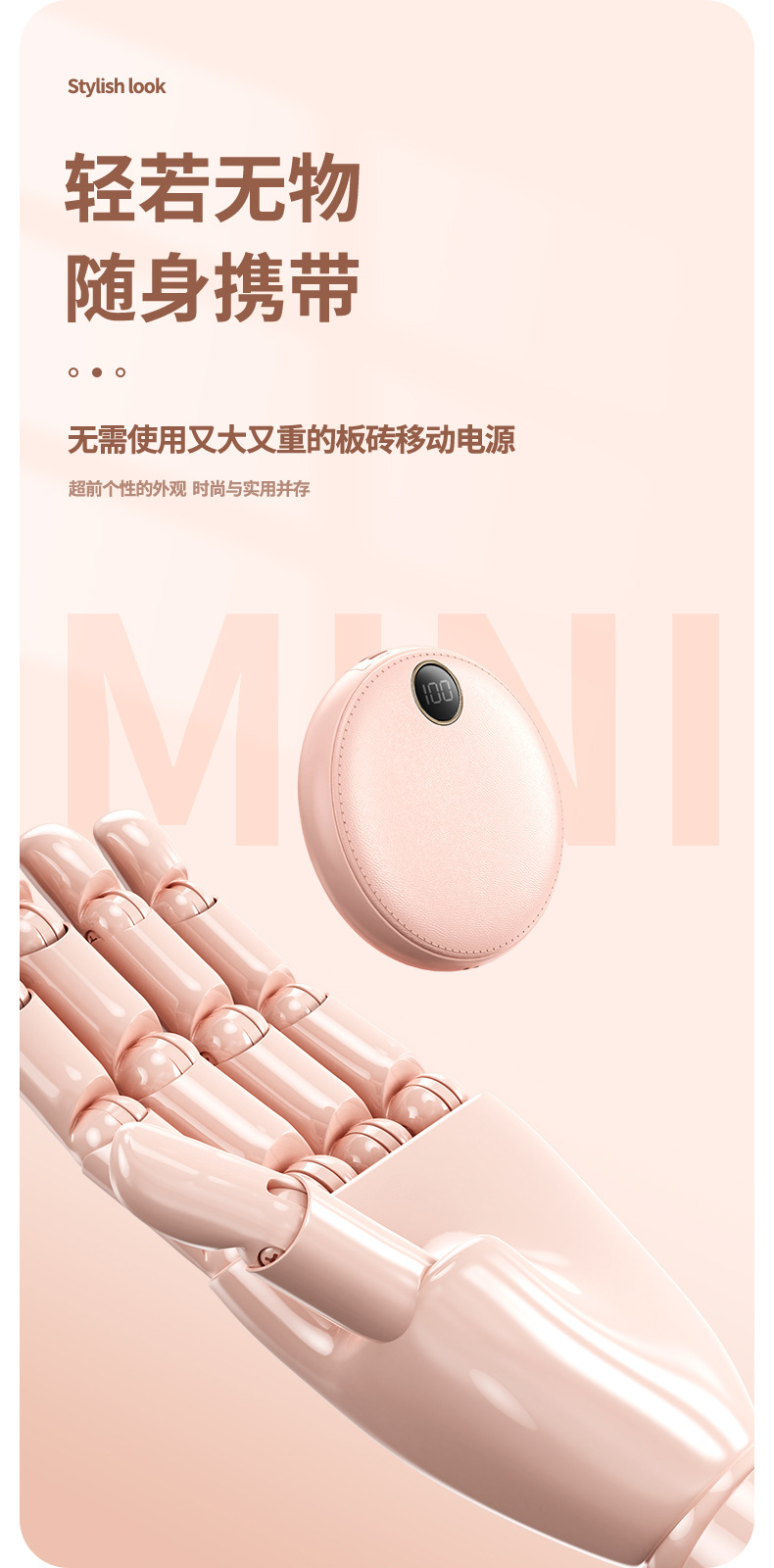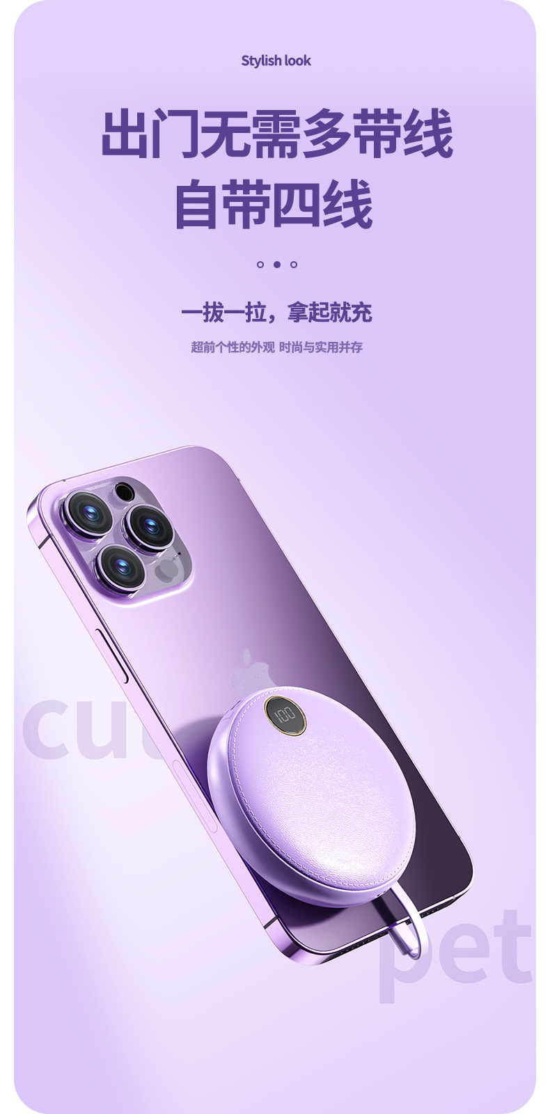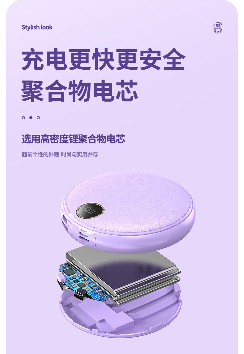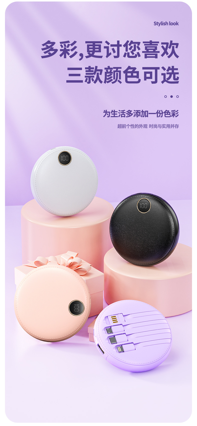 new 10000 ma large capacity digital display mobile power supply mini round with cable power bank gift printing 中文版