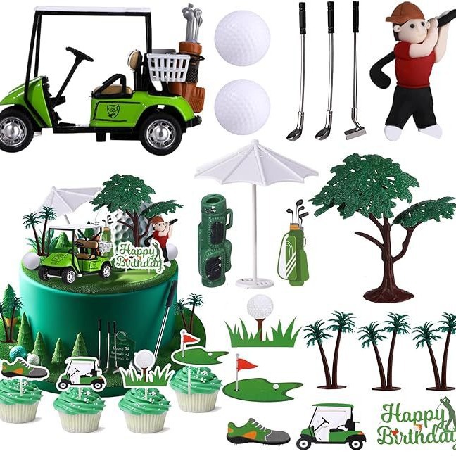 19 pieces golf cake golf birthday decorations sun umbrella green tree golf theme cake