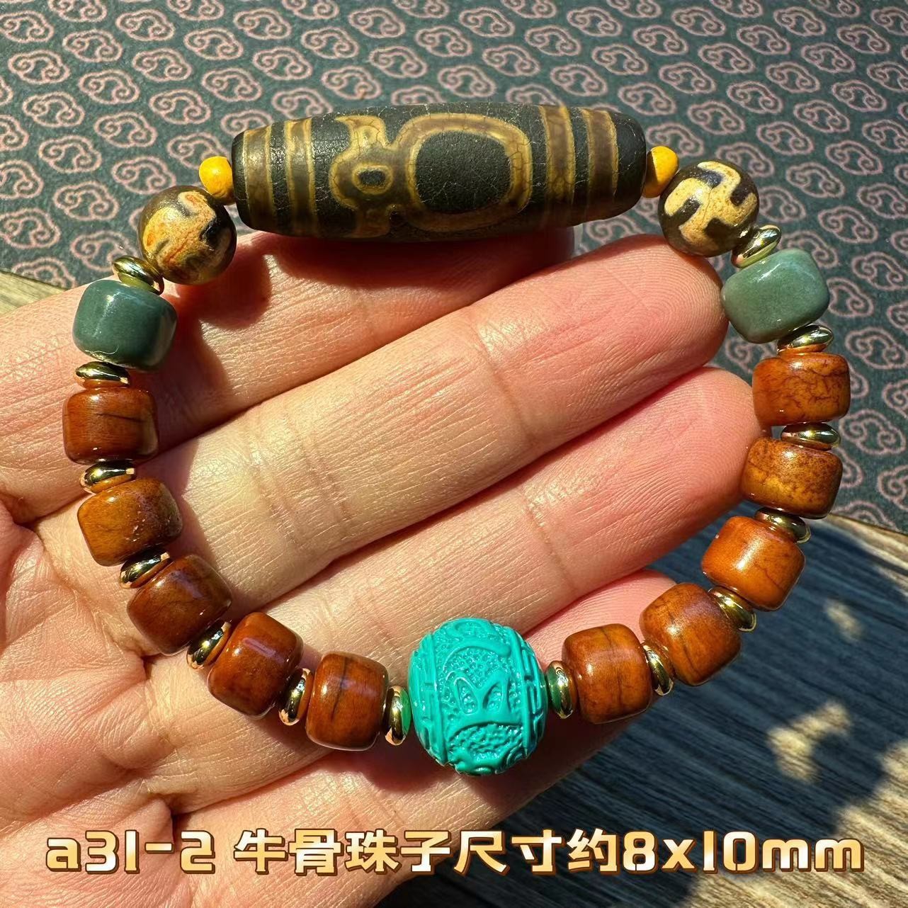 8 x10 ox bone plus turquoise [god of wealth tibet beads]]