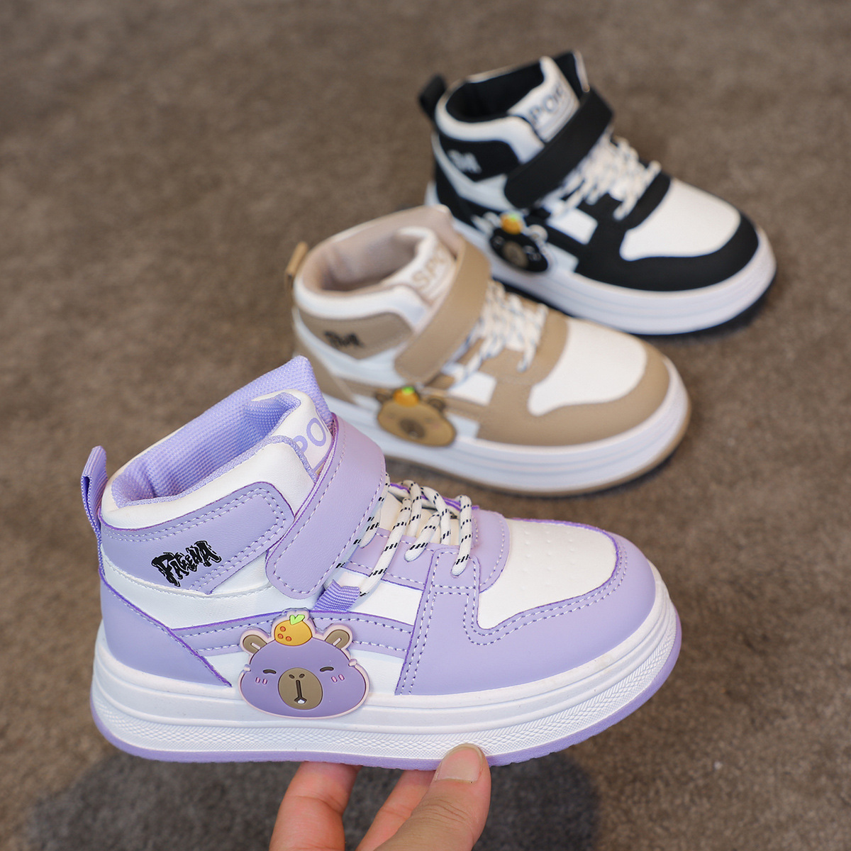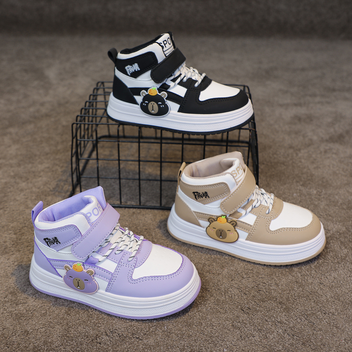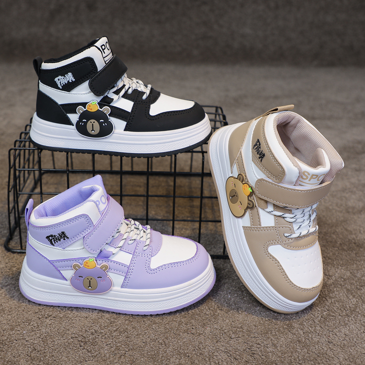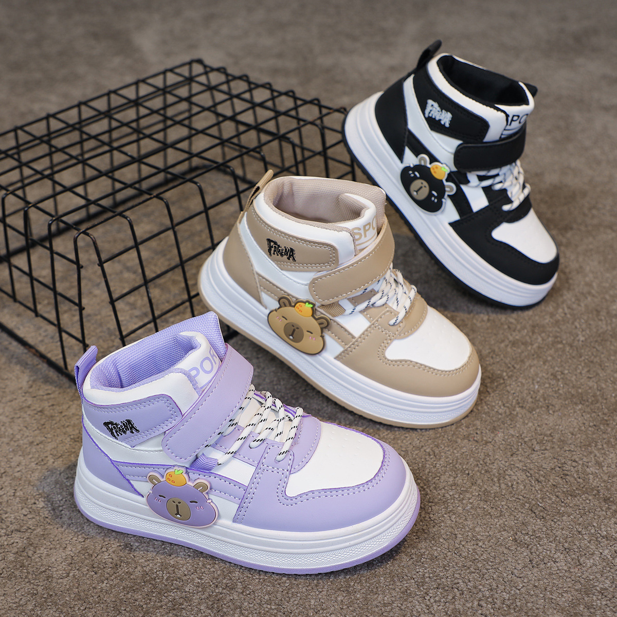 children's high-top board shoe medium and large kids shoes boys skateboard shoes breathable and wearable girls high-top board shoe cartoon versatile tide