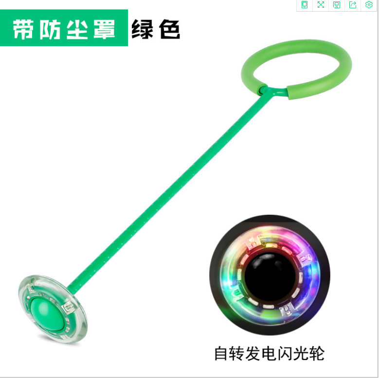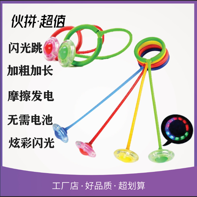 产品包含有发光轮,连接管一商设有发光轮,其另一端设有尾环。作用中通过双脚交替蹦跳运动,达到要理想的健身交易和置身璀璨光环之中的美妙乐趣。