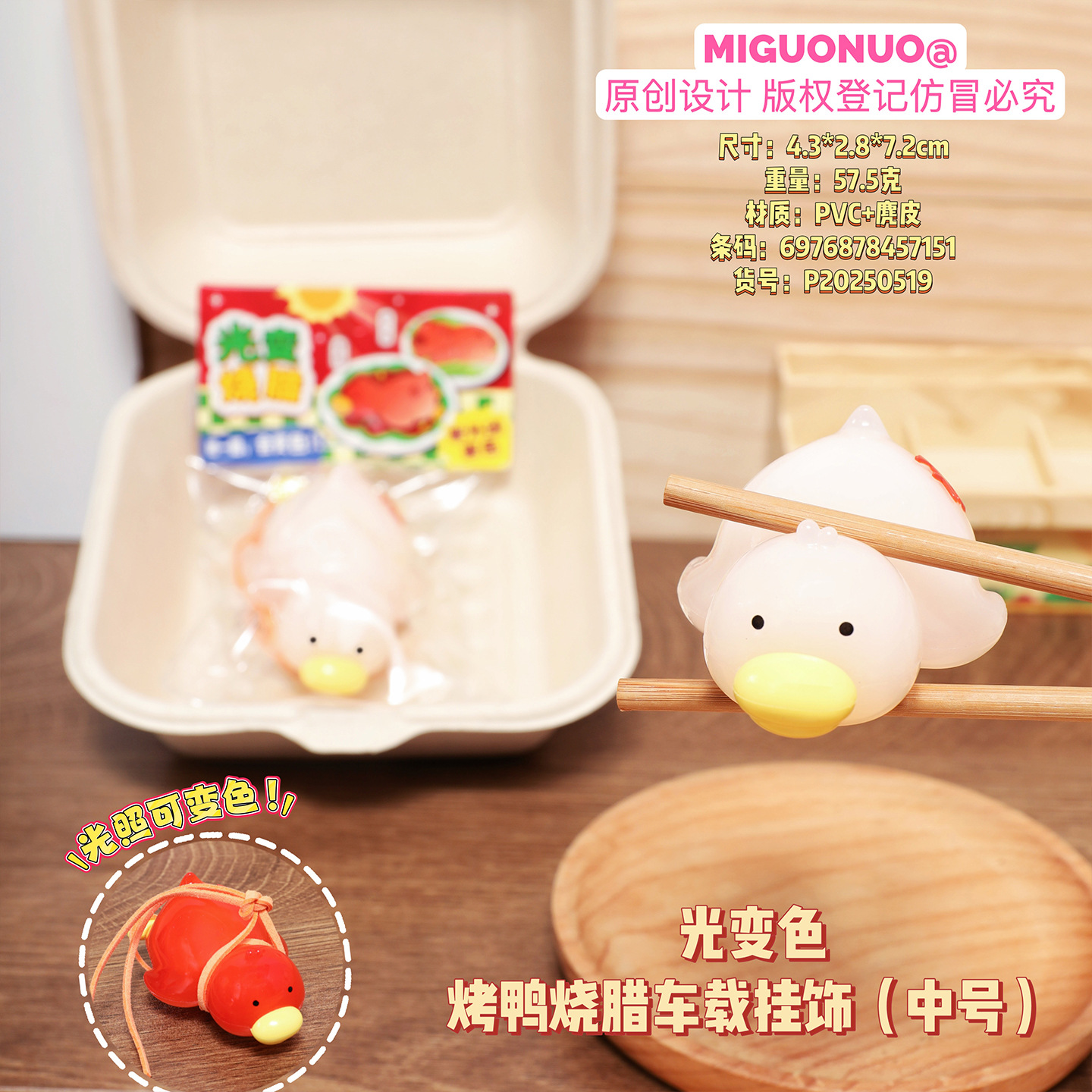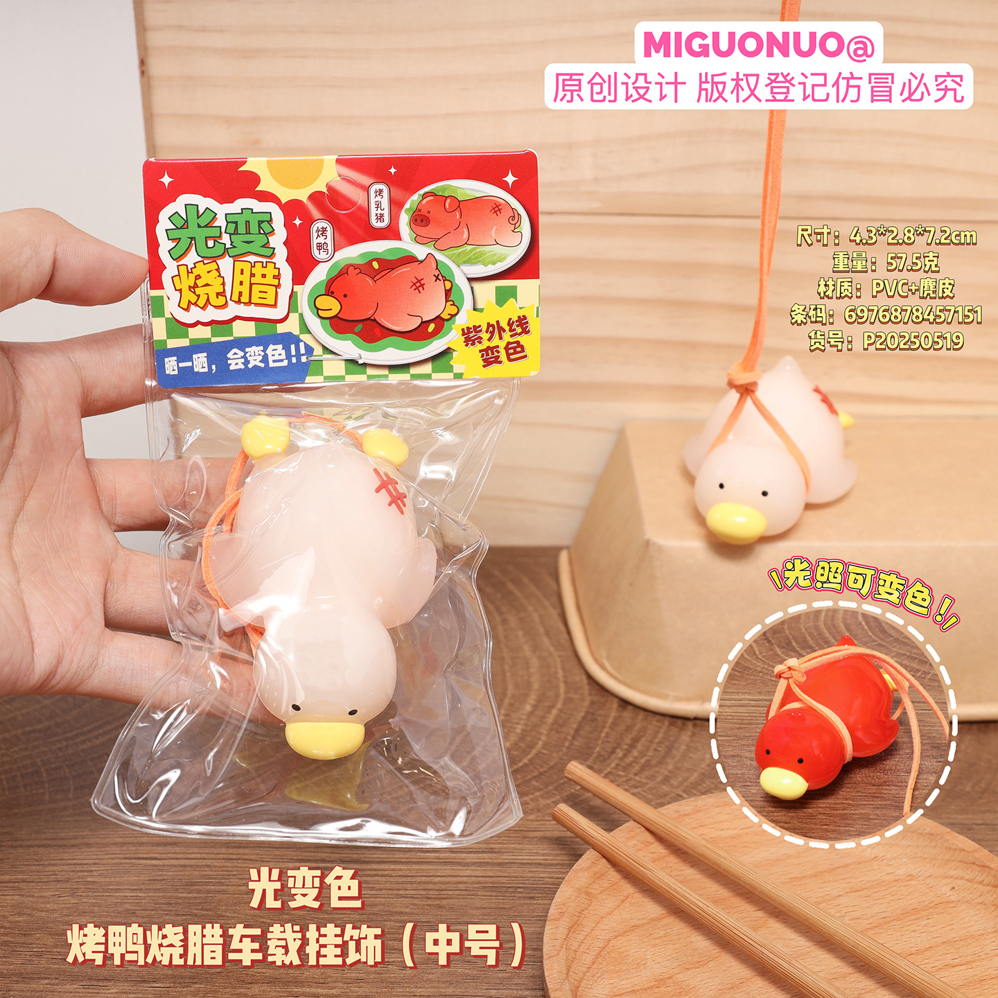 genuine light color-changing roast duck roasted car accessories online influencer cute blush duck creative car interior decoration pendant