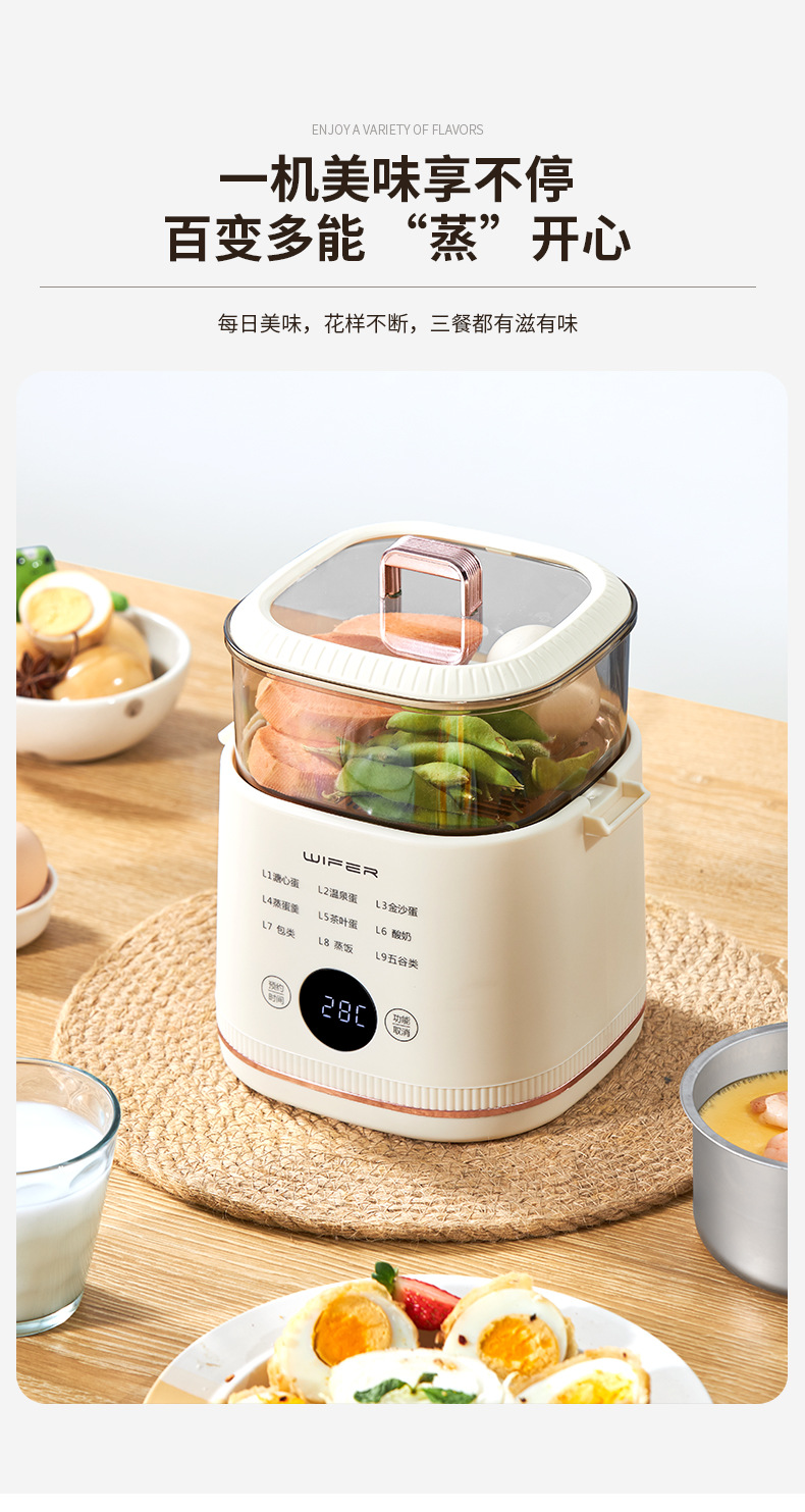 9 features egg boiler white【 host + steamed egg stand + custard bowl + high steamer]]