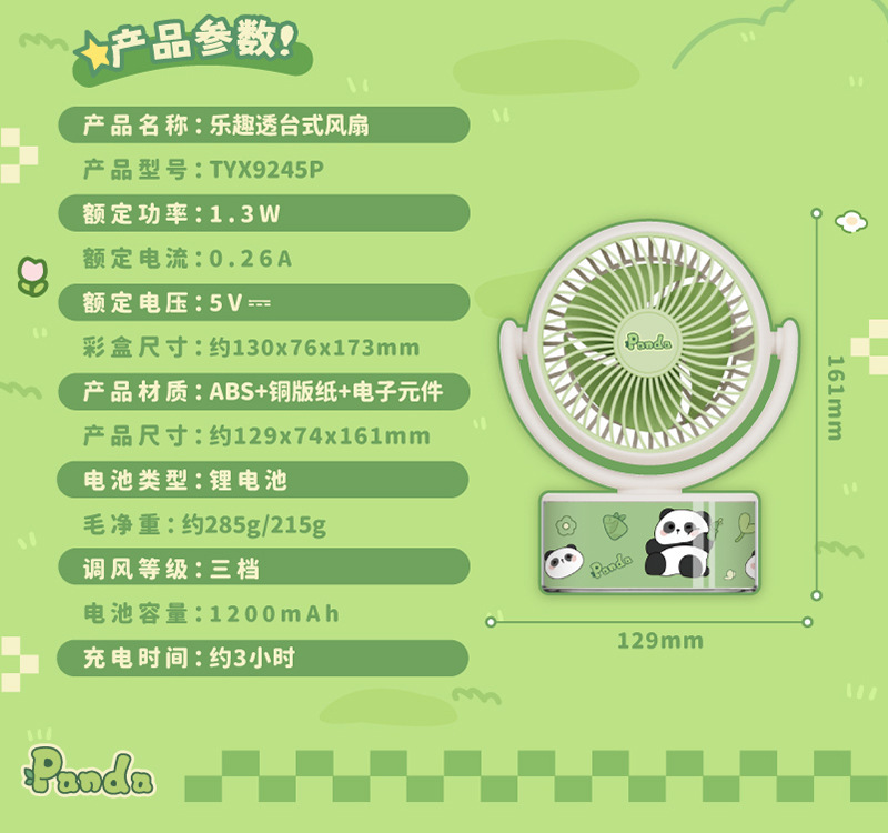 panda fun transparent desktop fan