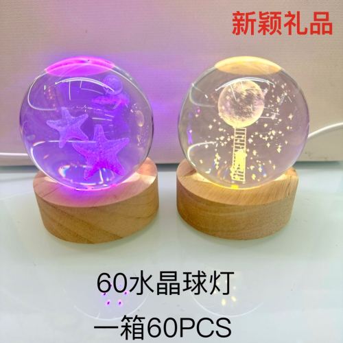 60 inner carving 3dubs socket led light crystal ball small night lamp decoration holiday gift 中文版