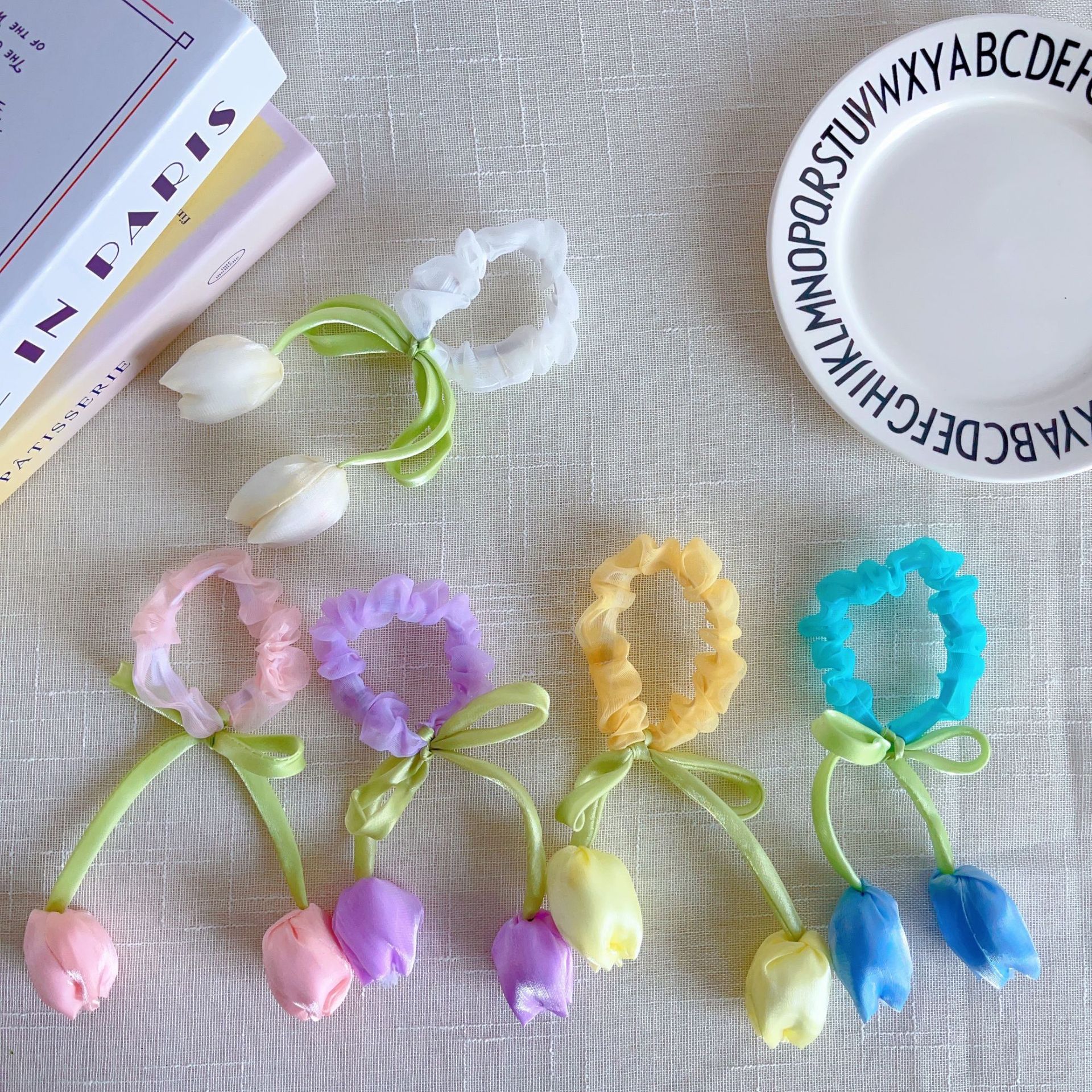 5# white tulip hair ring