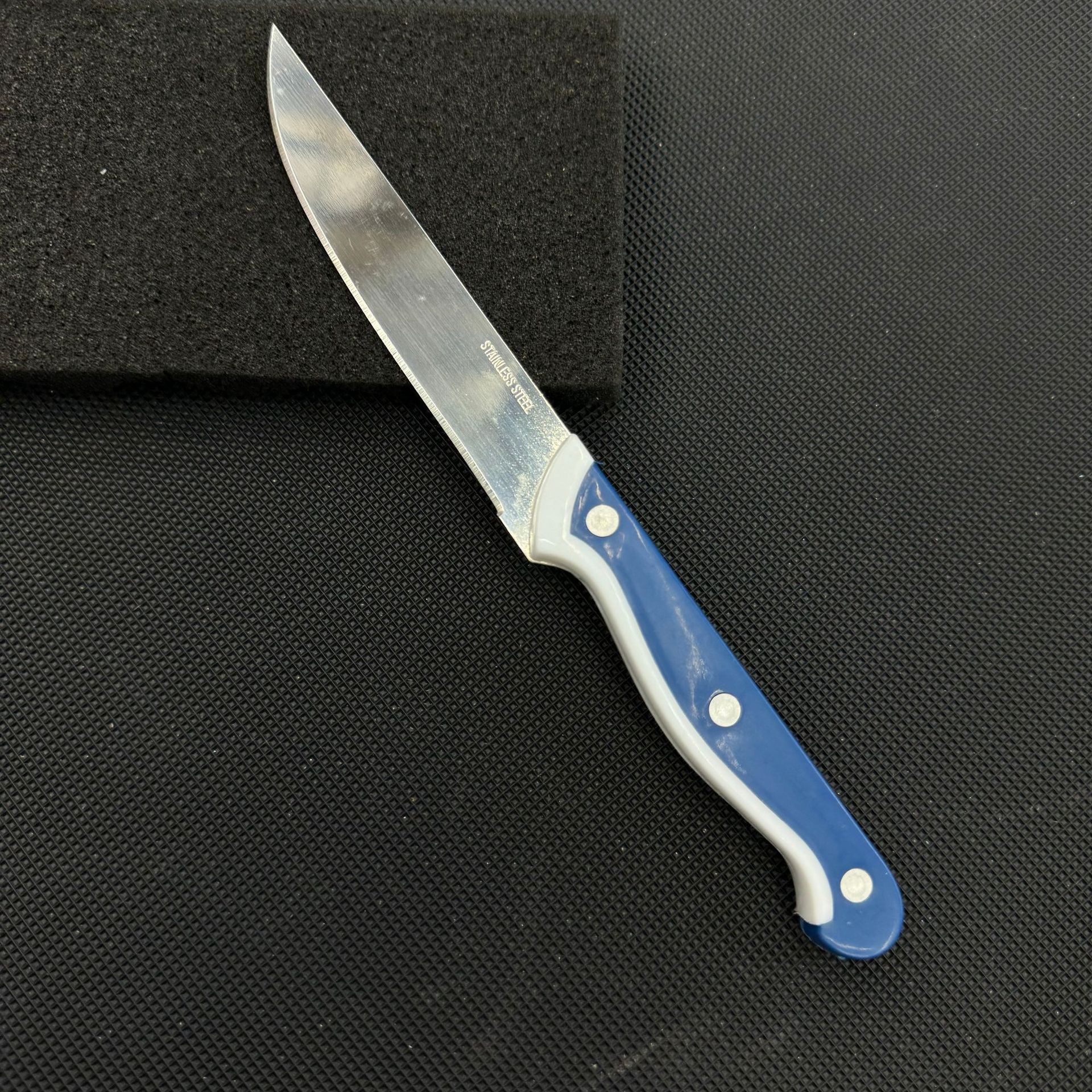 new creative blue and white plastic handle fruit knife household kitchen fruit peeling knife stainless steel fruit knife 中文版