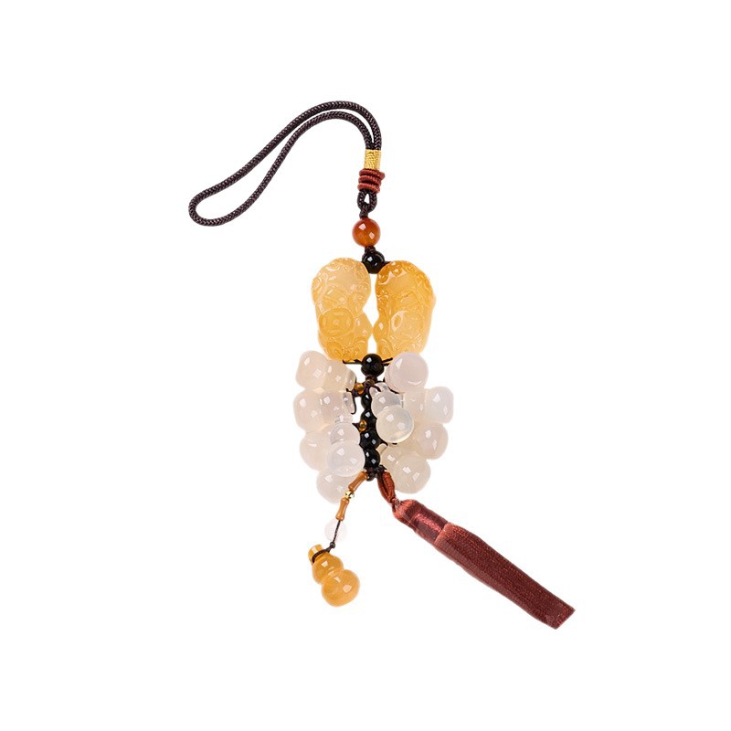 chalcedony double pixiu gourd brown with tassel car hanger
