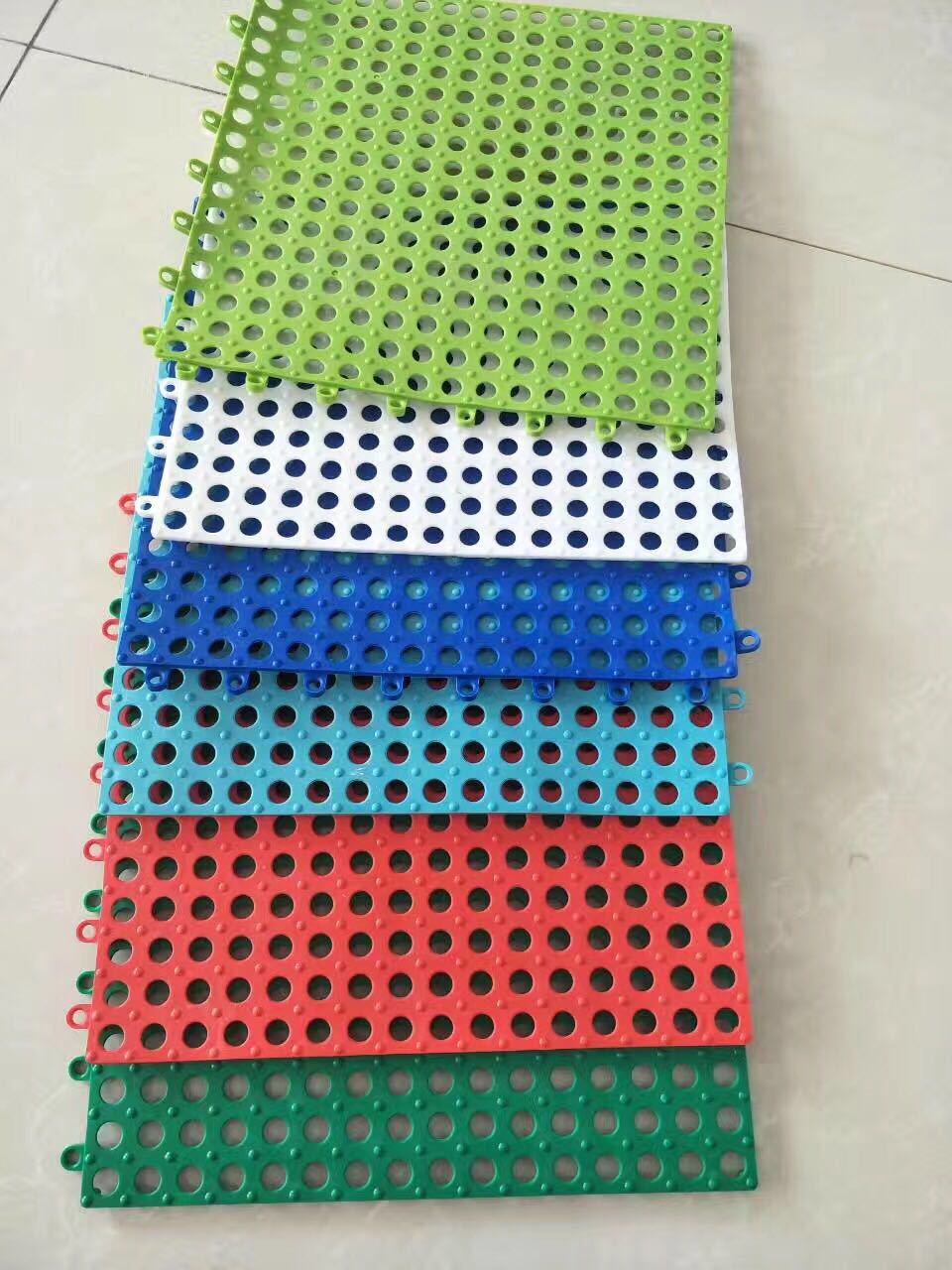 The DIY interlocking water-resistant mat is made of high-quality flame-retardant PE material, which is healthy and environmentally friendly. It is dust-proof and sand-proof, and can quickly drain water. It can be interlocked and assembled to create any shape you want. The surface has a raised dot array, which not only provides anti-skid performance for both the mat and the user, but also has a foot massage effect. This product is widely used in various fields such as bathrooms, kitchens, and gyms.