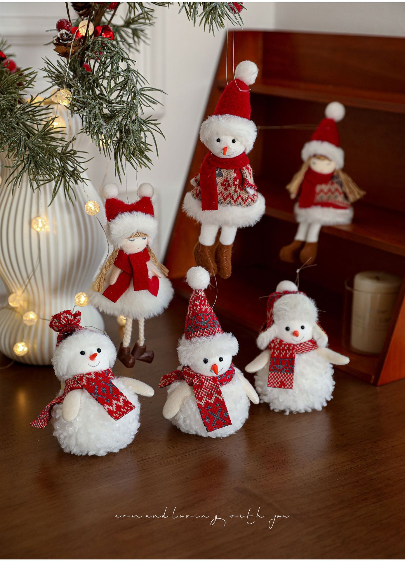 cross-border hot selling plush christmas pendant red and white snowman christmas tree hanging ornament table decorative ornament christmas tree hanging ornament 中文版