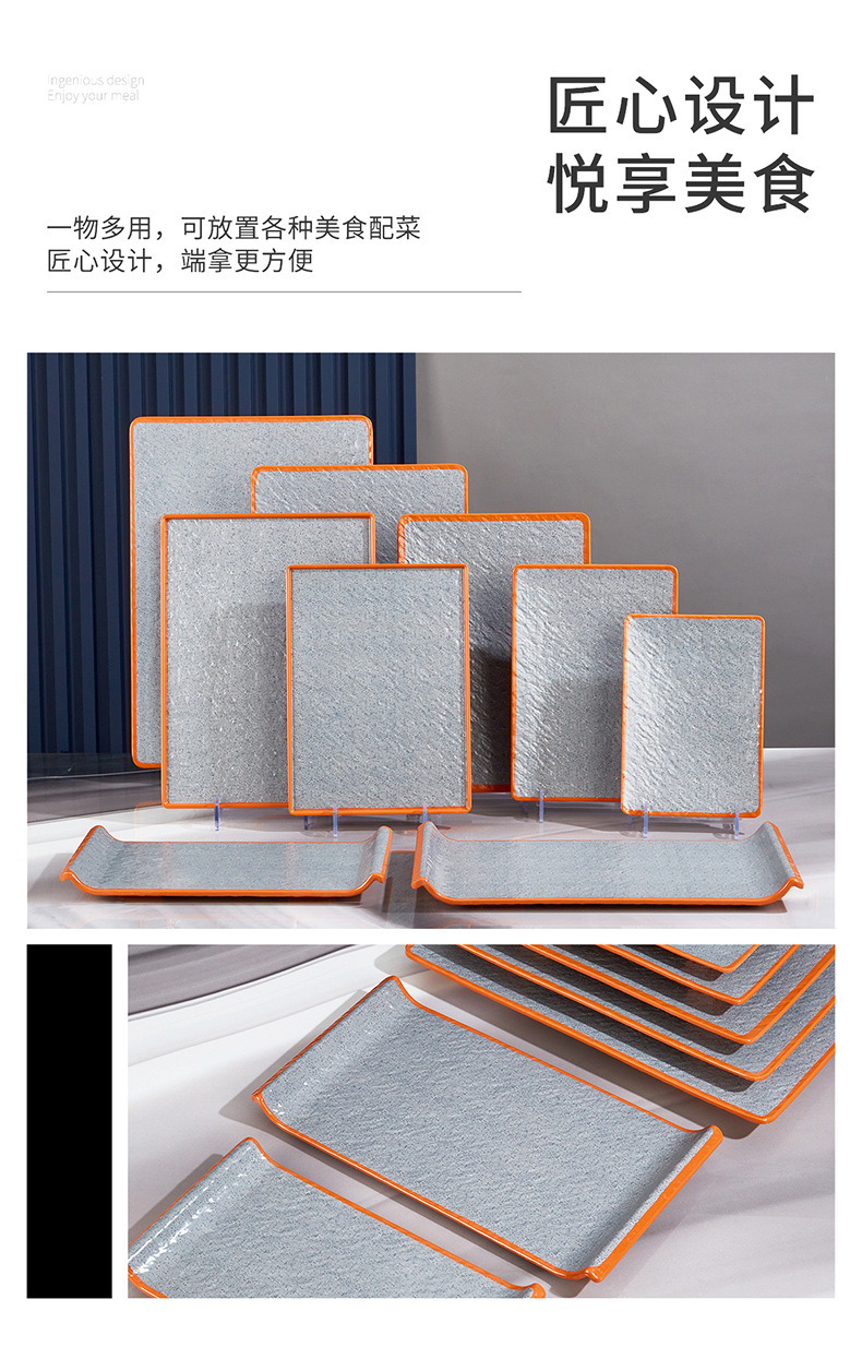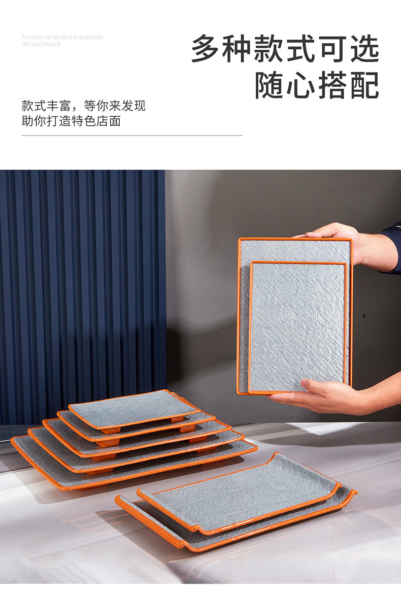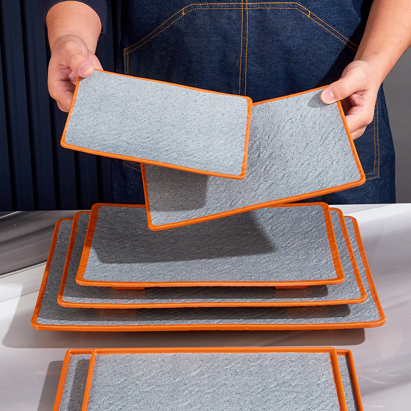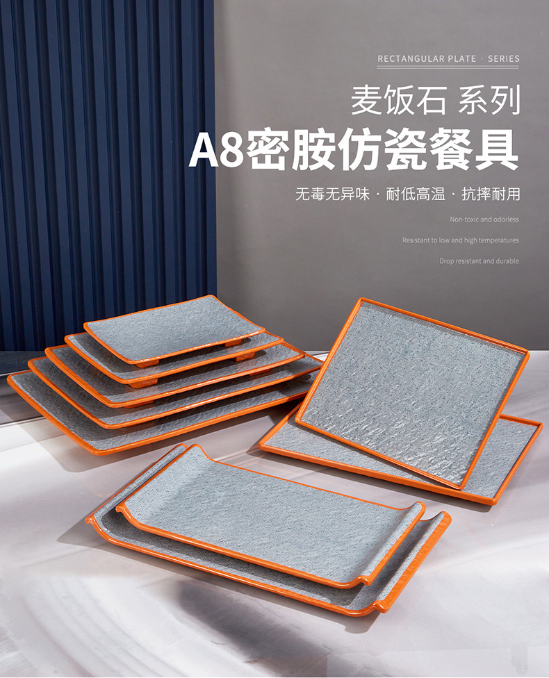 melamine rectangular barbecue plate hot pot food plate commercial barbecue plate imitation porcelain sushi plate long flat plate dim sum plate 中文版