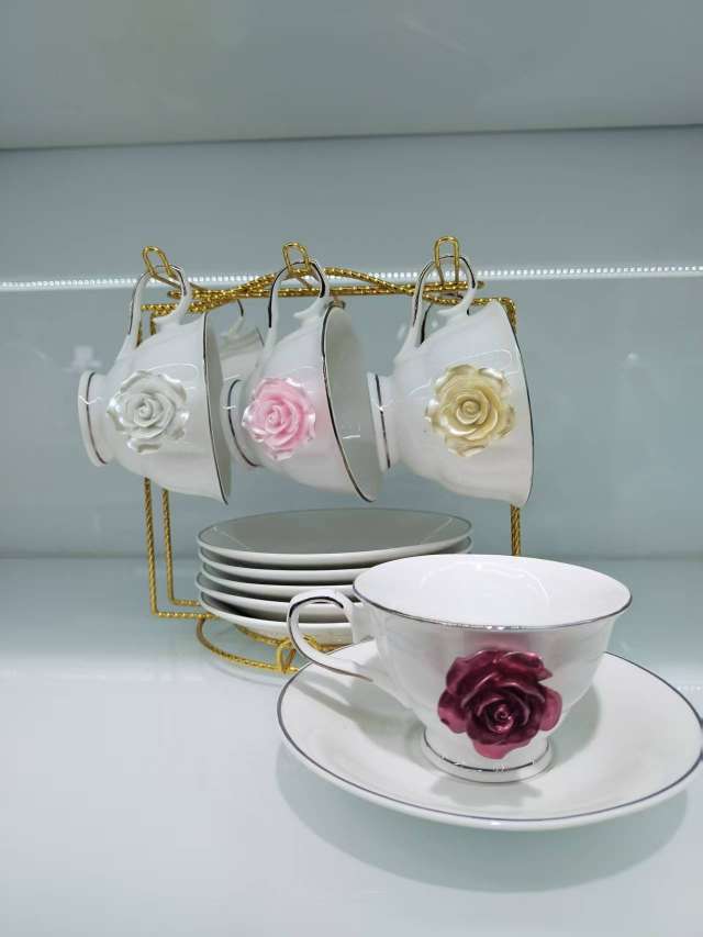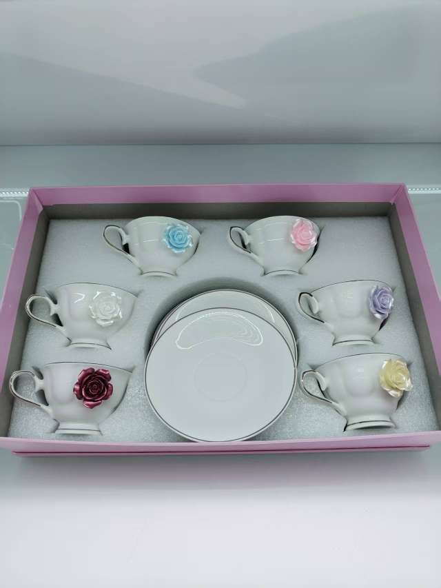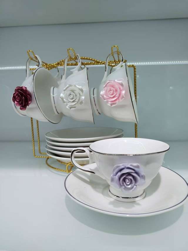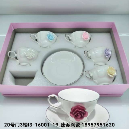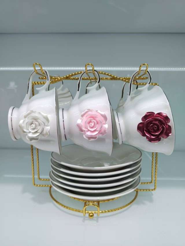 6杯6碟咖啡具套装,咖啡具 桃花 杯子容量200cc 朵花咖啡具套装 咖啡杯碟咖啡具 串盘陶瓷盘糕点盘披萨盘水果盘坚果盘带架子 零食盒玻璃Update time: