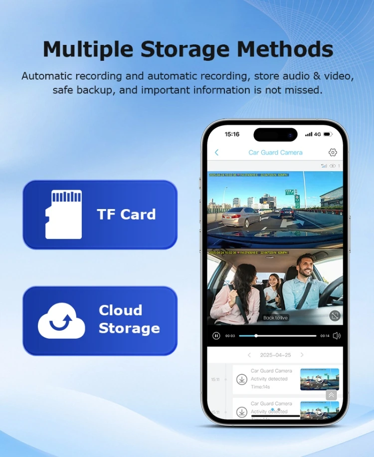 * 双模记录: 连续驾驶镜头 + 碰撞触发事件记录,全面覆盖。