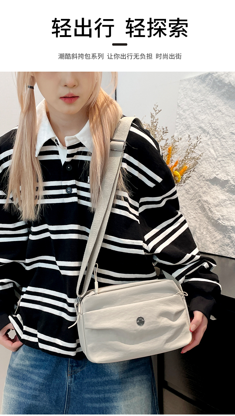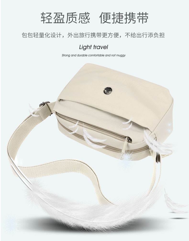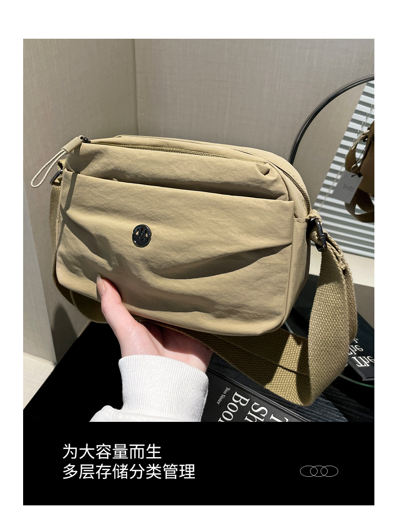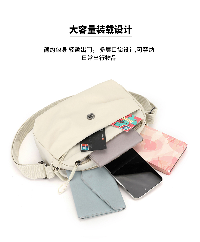 Fashion shoulder bag, made of high-quality lightweight and waterproof nylon fabric, multi-layer design, large capacity, suitable for carrying cosmetics, sunscreen, lipstick, mobile phones, sunglasses and other items for daily shopping and travel. It is a hot export item.
