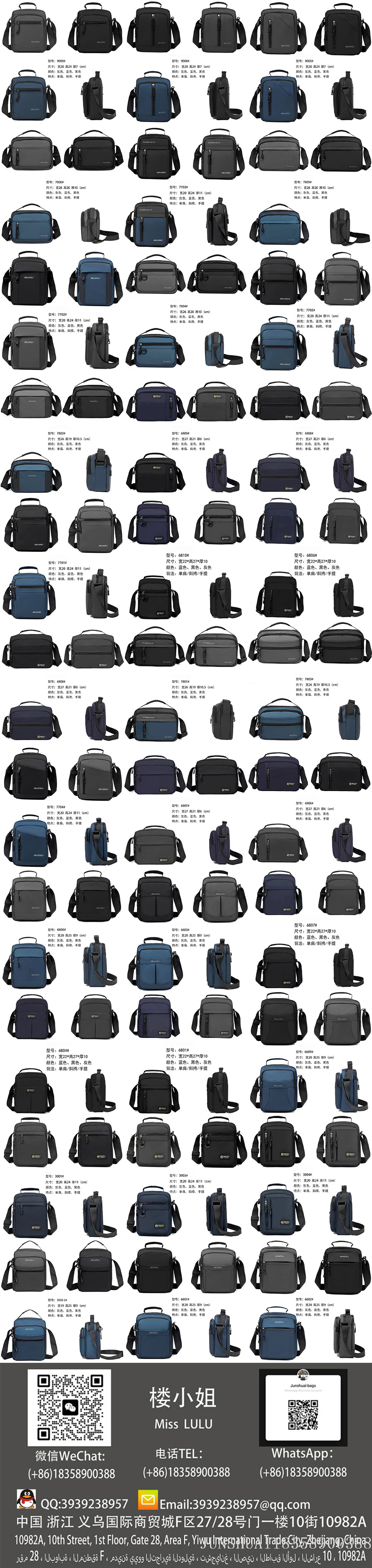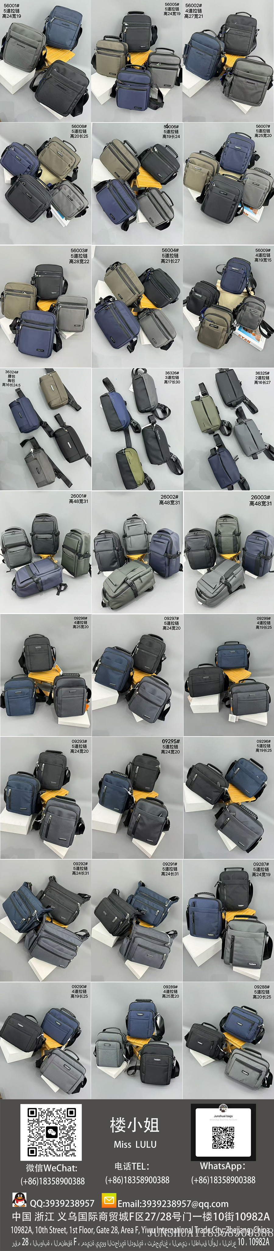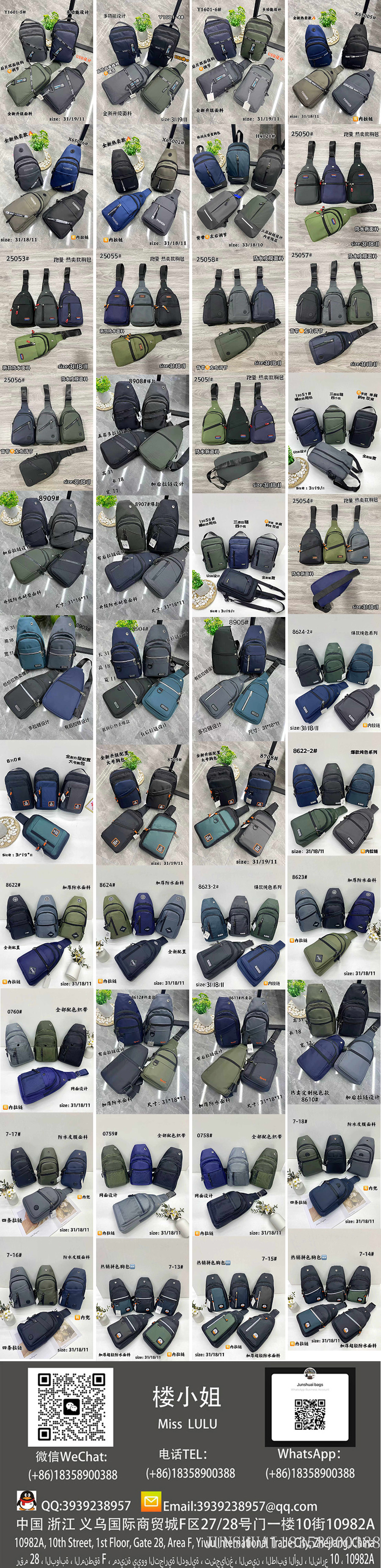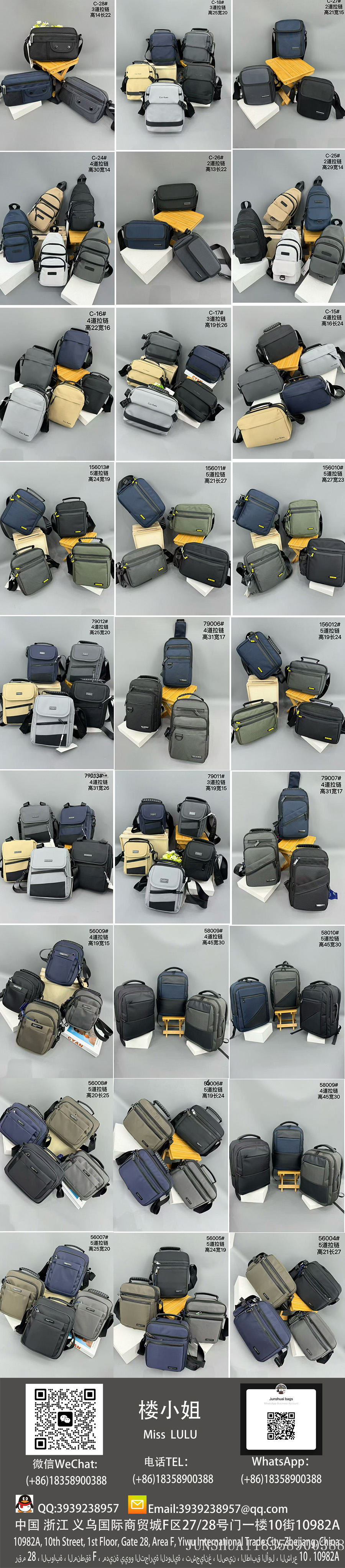 With over a decade of expertise in bag manufacturing, we specialize in producing a full range of bags made from genuine leather, PU, PVC, nylon, Oxford fabric, and canvas, including backpacks, crossbody bags, men's business bags, women's fashion bags, shoulder bags, school backpacks, travel bags, and large luggage.We maintain 3000 ready-to-ship designs with 72-hour fast delivery while also offering in-depth customization to meet diverse procurement needs.