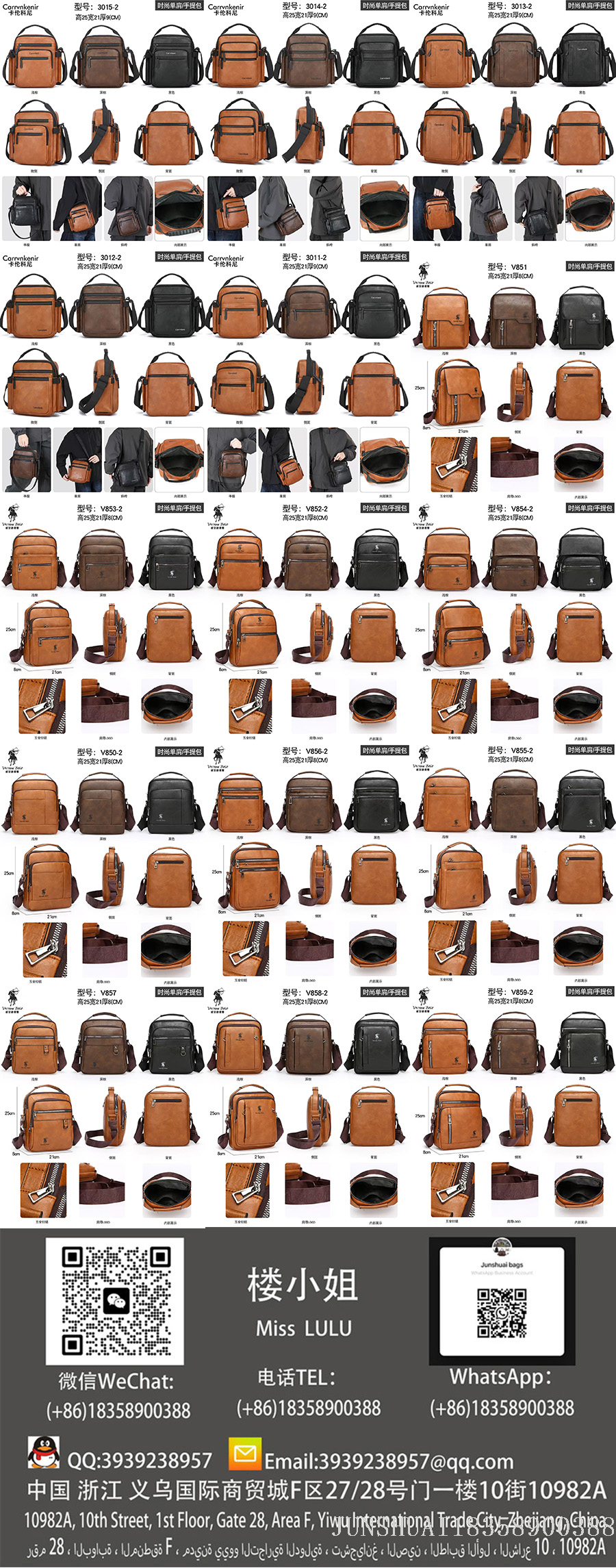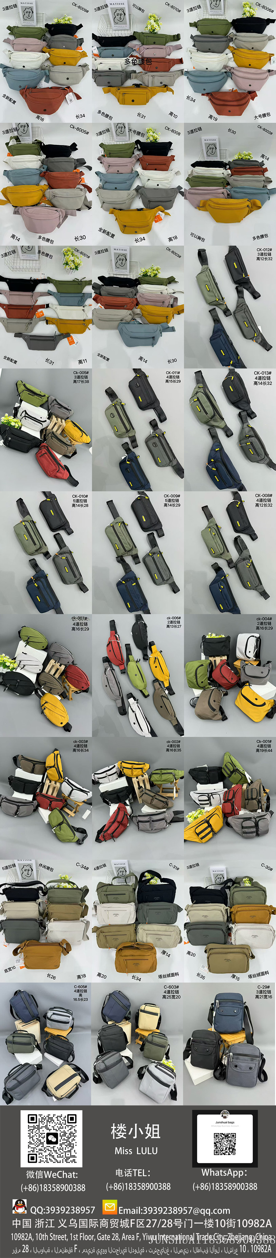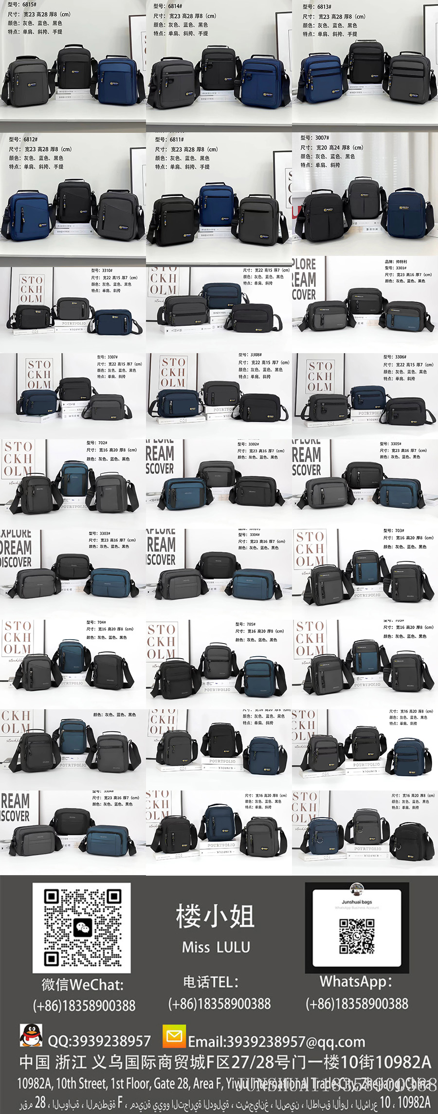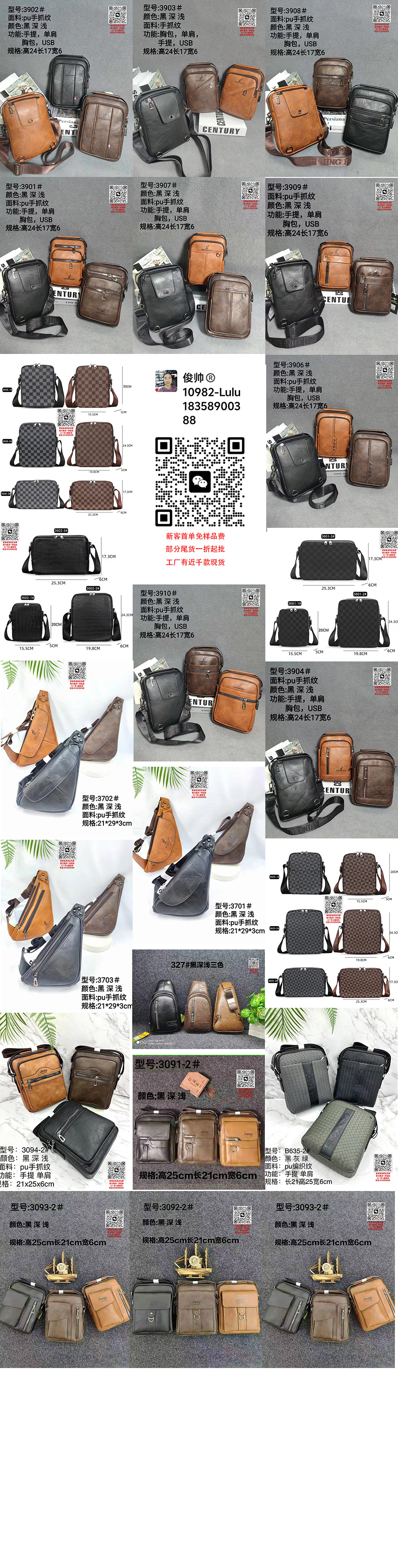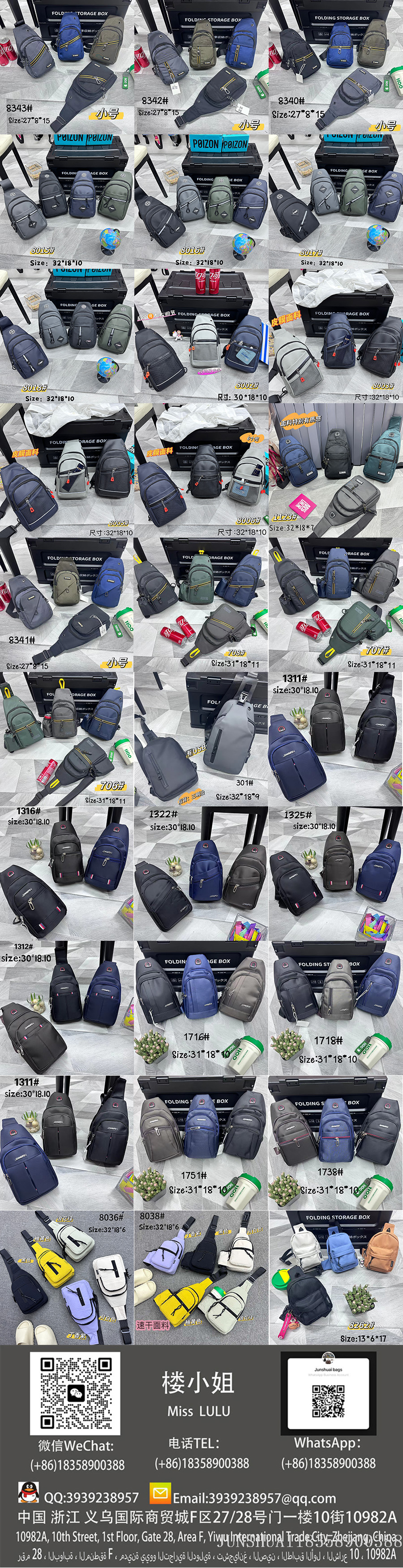 With over a decade of expertise in bag manufacturing, we specialize in producing a full range of bags made from genuine leather, PU, PVC, nylon, Oxford fabric, and canvas, including backpacks, crossbody bags, men's business bags, women's fashion bags, shoulder bags, school backpacks, travel bags, and large luggage.We maintain 3000 ready-to-ship designs with 72-hour fast delivery while also offering in-depth customization to meet diverse procurement needs.