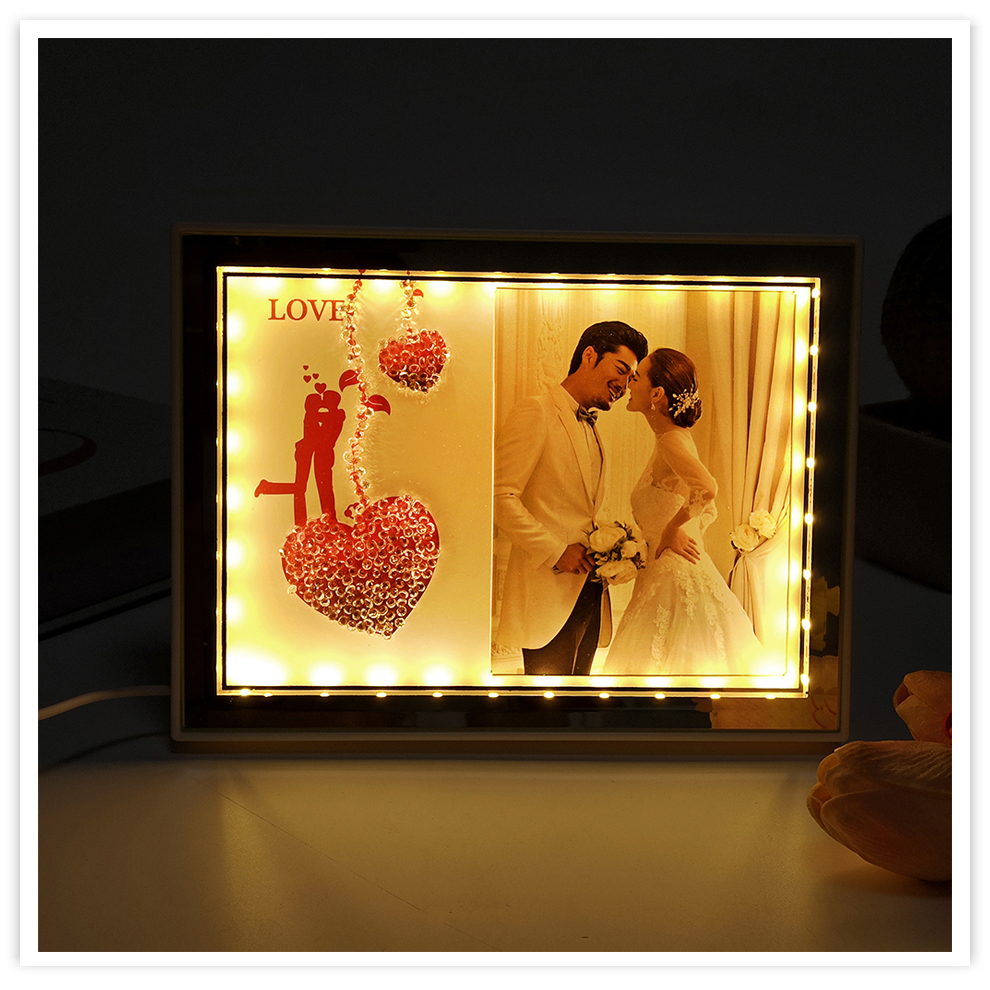 european-style simple crystal glass photo frame photo studio and photo frame square creative led luminous photo frame cross-border wholesale 中文版