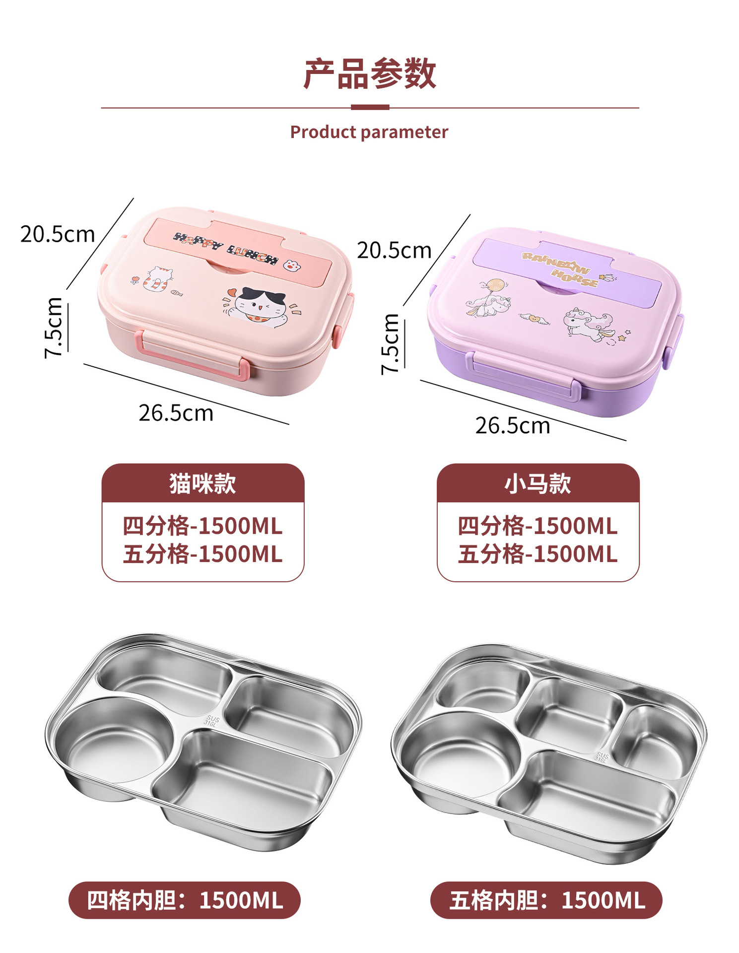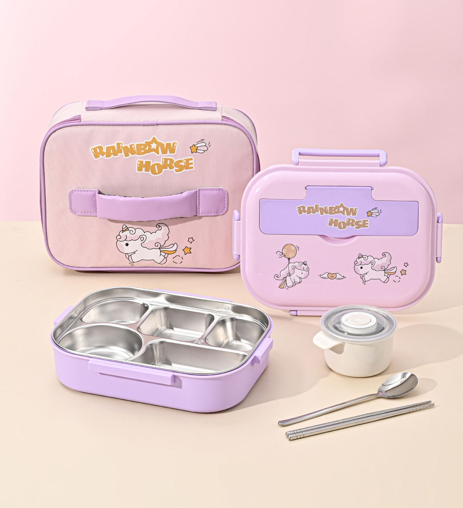 316l steel-purple-five grid 1500ml (send chopstick and spoon + soup bowl + thermal bag).