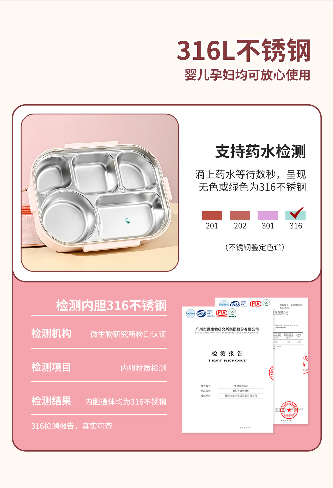 316l steel-purple-four grid 1500ml (send chopstick and spoon + soup bowl).