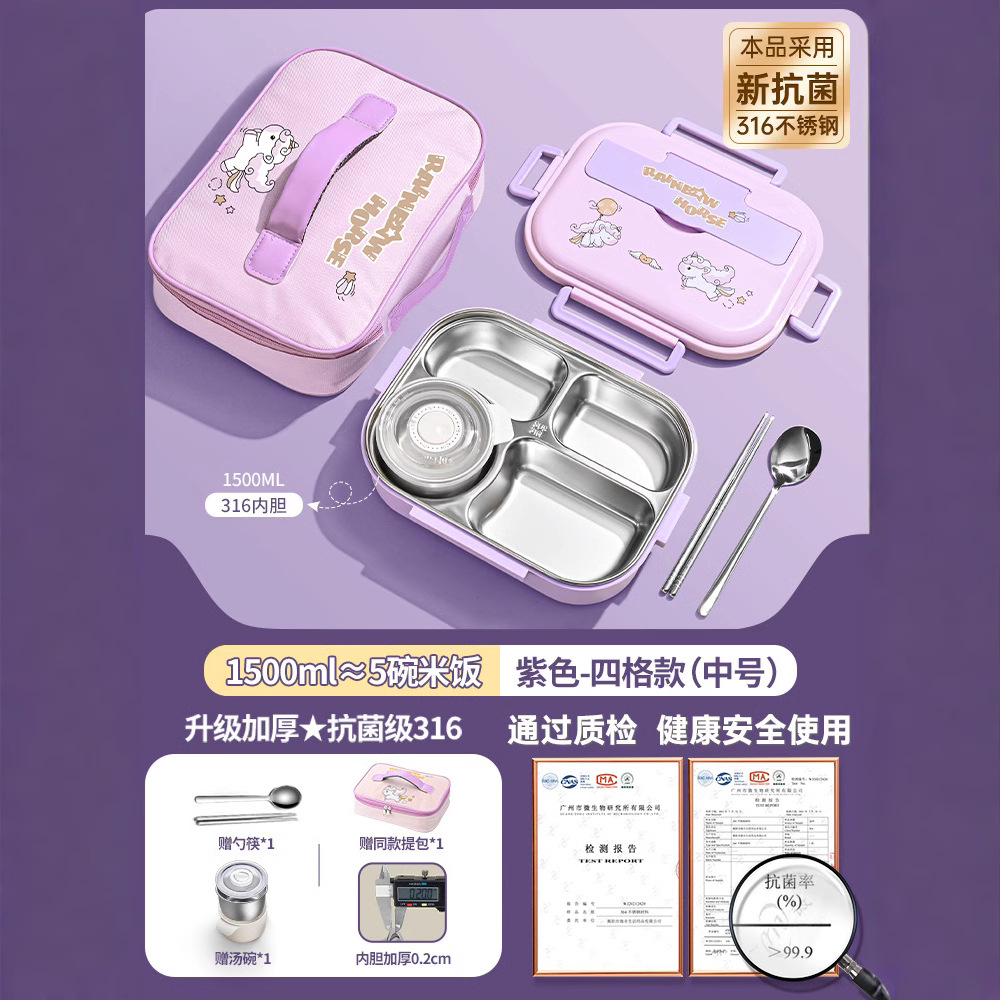 [upgrade thickened antibacterial 316l steel] purple-four grid 1500ml (send chopstick and spoon + soup bowl).