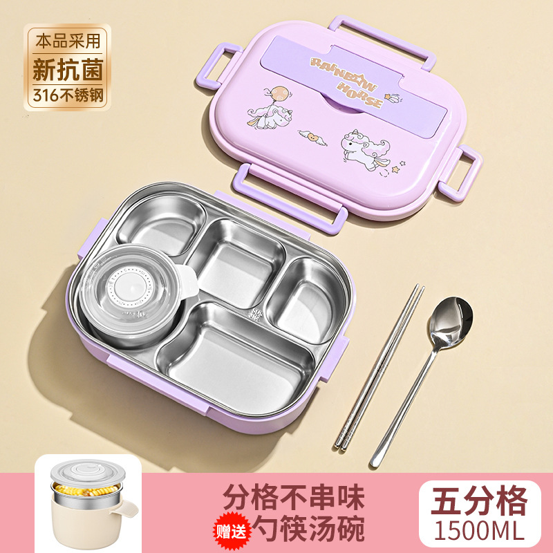 [upgrade thickened antibacterial 316l steel] purple-five grid 1500ml (send chopstick and spoon + soup bowl).