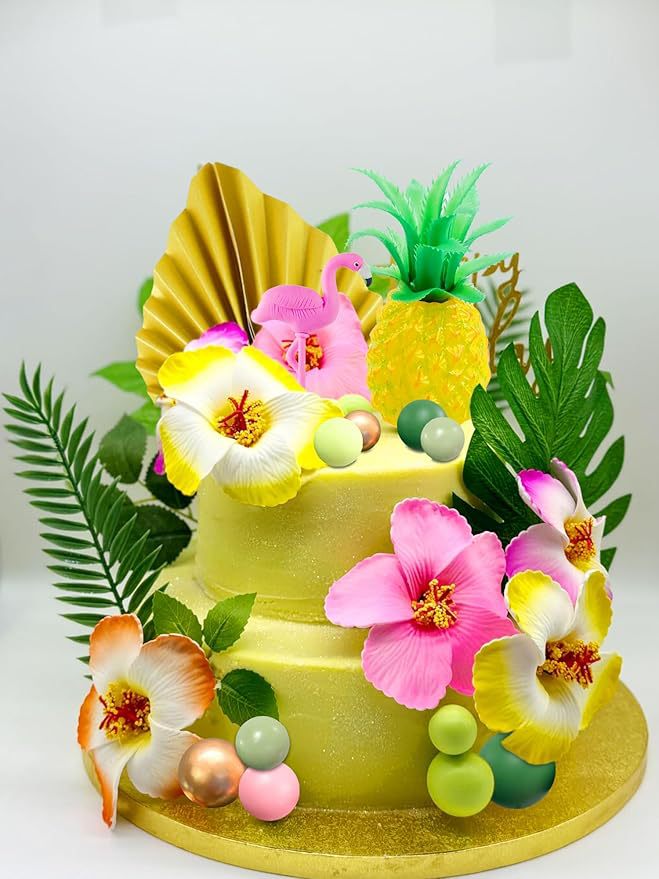 flamingo cake decoration palm leaf cake decoration gold powder ball cake decoration rose cake decoration flamingo 中文版
