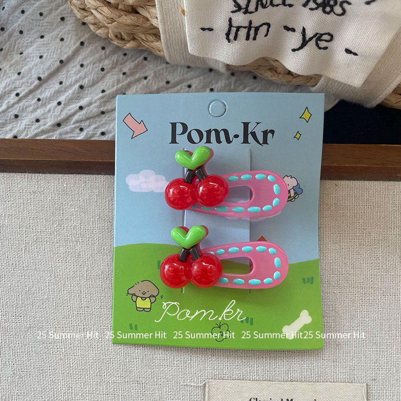 [3] red cherry barrettes