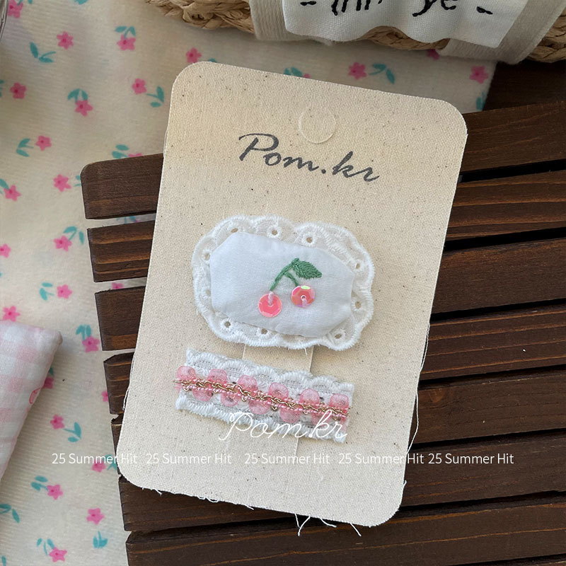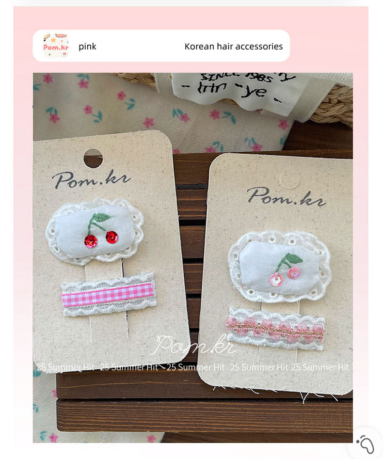 [1] pink cherry lace barrettes